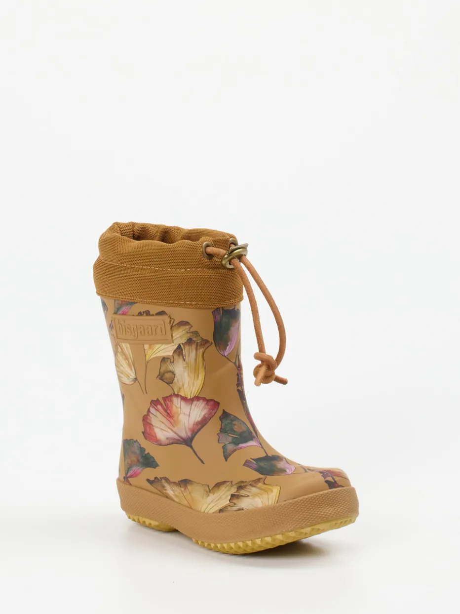 Ockerbraune Kinder-Gummistiefel von Bisgaard mit floralem Print und verstellbarem Schaft für sicheren Halt bei jedem Wetter – funktional und stilistisch im Trend.