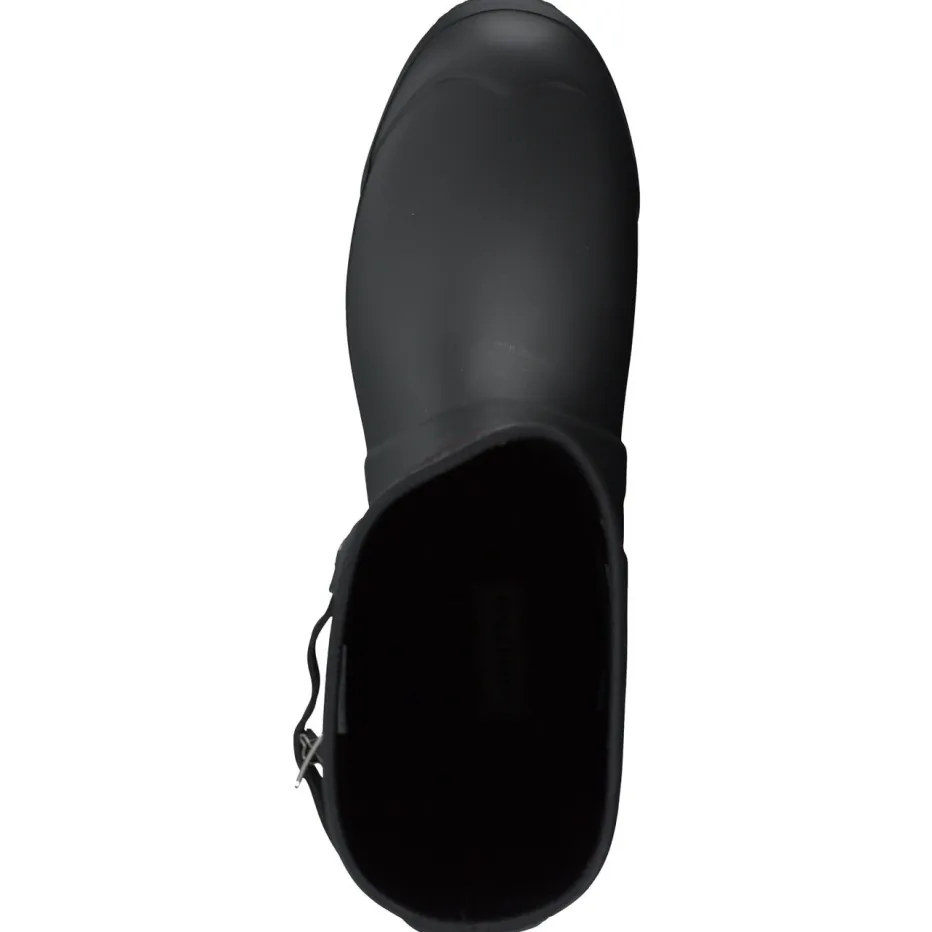 Nasswetter braucht Stil.Die Marke Hunter präsentiert einen unisex Gummistiefel in der Kategorie Freizeit- und Outdoorschuhe. Ob für nasse Waldwege oder verregnete Großstadtstraßen: Der Stiefel aus wetterfestem Synthetikmaterial überzeugt durch seine matte schwarze Oberfläche und eine klar strukturierte Silhouette mit leicht ausgestelltem Schaft. Funktionale Designdetails wie eine silberfarbene Metallschnalle an der Seite, das geprägte Markenlogo sowie eine stark profilierte Gummisohle bieten Halt und visuelle Akzente. Dank der Schlupfform ist er unkompliziert anzuziehen und passt zum funktional-modernen Gorpcore-Trend. Kombinierbar mit Regenjacke und Thermosocken. Zuverlässige Hunter-Qualität für stilbewusste Wetterfestigkeit.