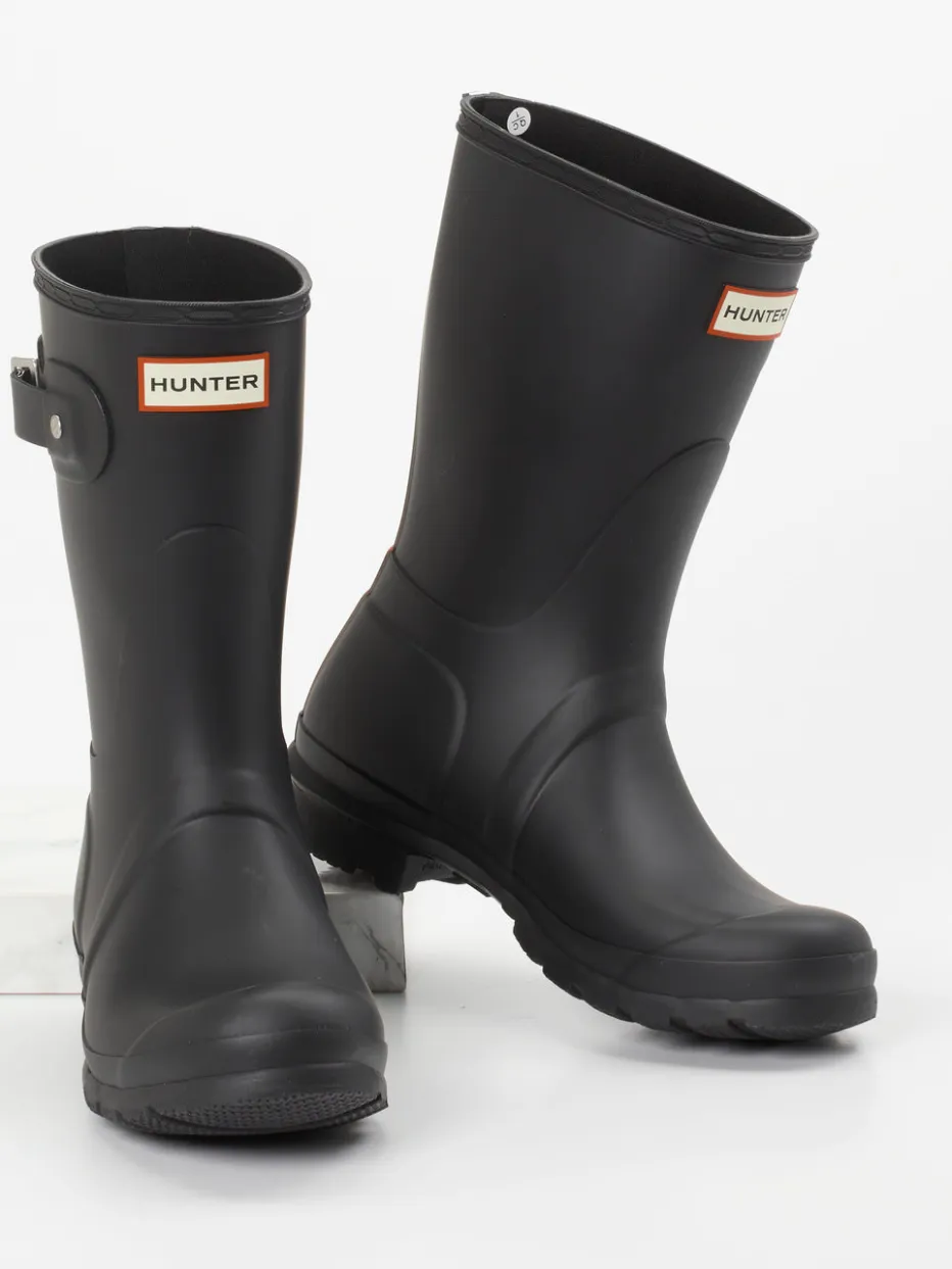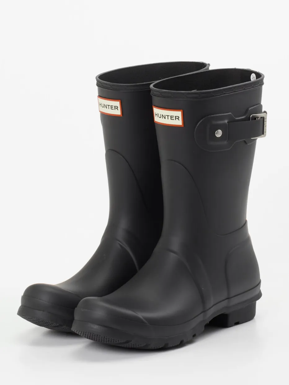 Wetterbeständige Gummistiefel von Hunter verbinden Utilitywear-Charme mit modischem Minimalismus. Die griffige Profilsohle sorgt für Halt, das mattschwarze Finish unterstreicht den urbanen Look.
