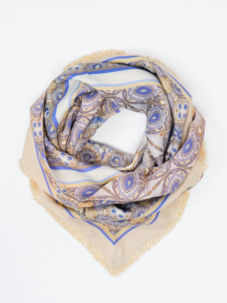 Mit edlem Glanz und opulentem Ornamentprint überzeugt dieses quadratische Tuch durch seine stilvolle Anmutung und vielseitige Kombinierbarkeit in Business und Freizeit.