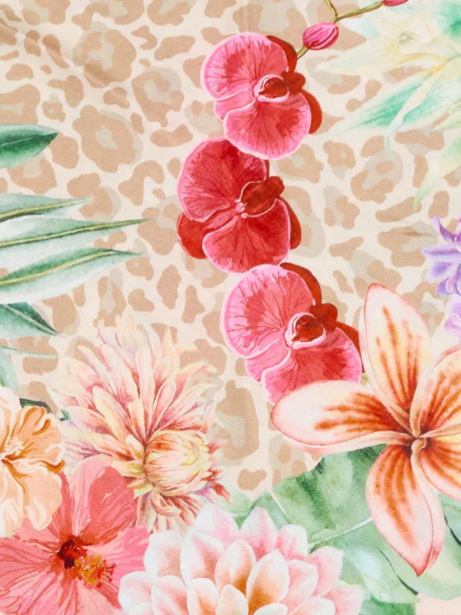 Mit floralem Maximal-Print und schimmerndem Finish verleiht dieses Tuch sommerlichen Outfits einen Hauch Exotik und Farbe.