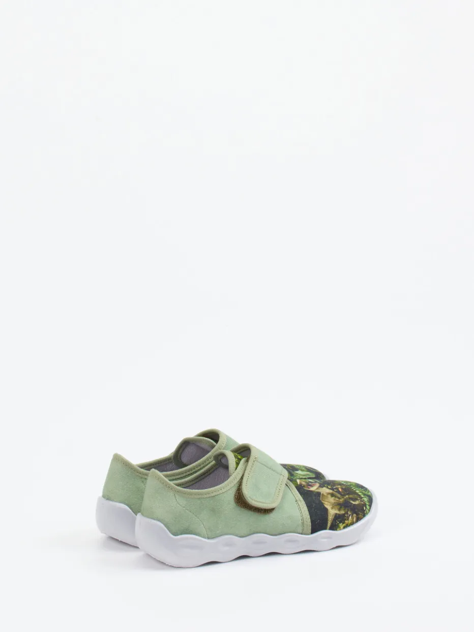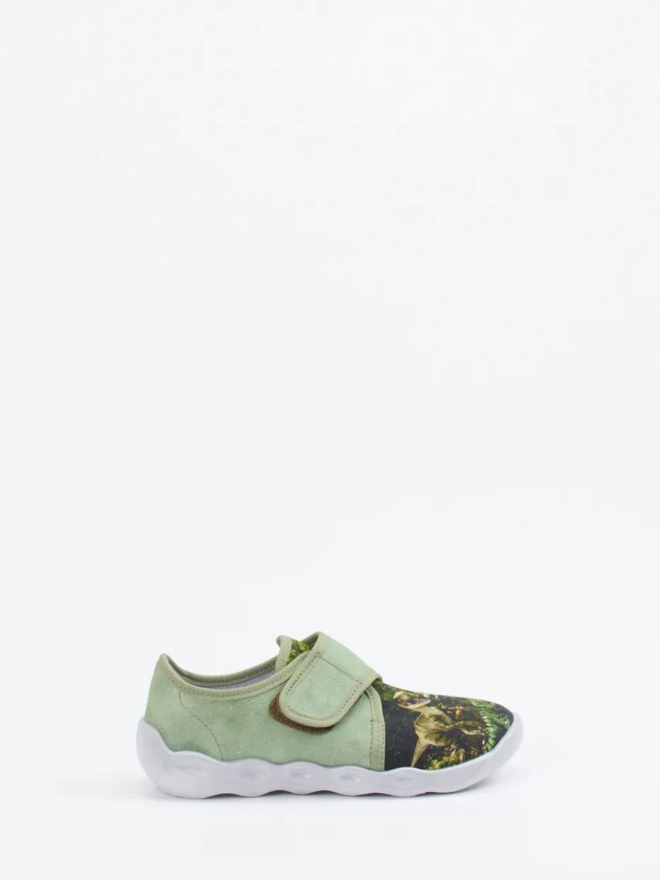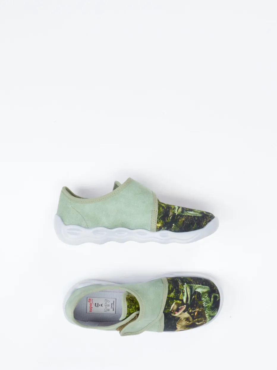 Spielstark mit Dino-Power.Superfit präsentiert diesen leichten Hausschuh für Kinder. Ob für Abenteuer im Kinderzimmer oder entspannte Stunden zuhause – mit dem salbeigrünen Textilmaterial in matter Oberfläche und witzigem Dino-Print liefert das Modell kindgerechten Tragekomfort und visuelle Highlights. Der praktische Klettverschluss ermöglicht ein einfaches Anziehen, während der gepolsterte Einstieg zusätzlich für Bequemlichkeit sorgt. Eine flexible PU-Sohle mit Belüftungsöffnungen unterstützt das Fußklima. Ein idealer Begleiter für die neue Saison und perfekt kombinierbar mit Casual-Wear oder Dino-Motiven. Verbindet Funktionalität, Lieblingsmotive und Komfort auf Superfit-Niveau.