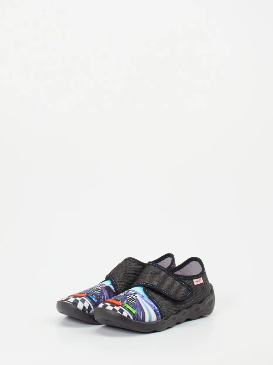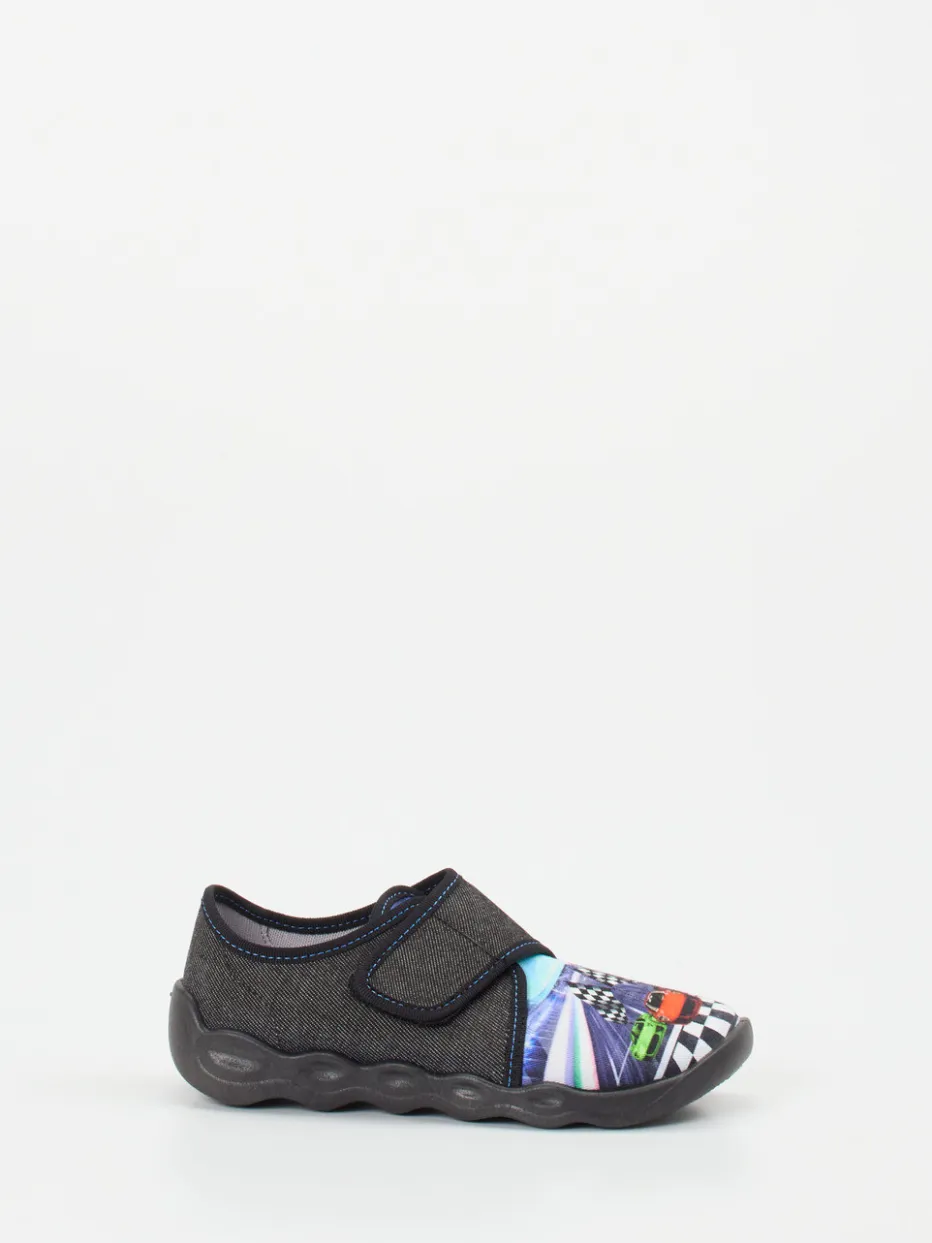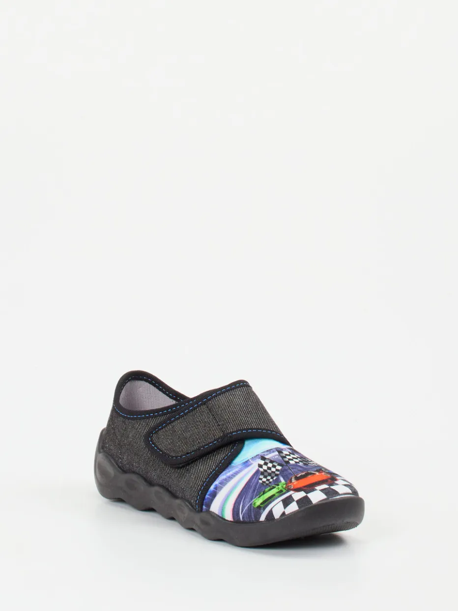 Weiches Textilmaterial, ein kindgerechtes Klettsystem und ein dynamisches Design mit Rennwagen-Motiv machen diesen Superfit-Hausschuh zu einem Lieblingsstück im Kinderalltag.