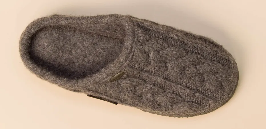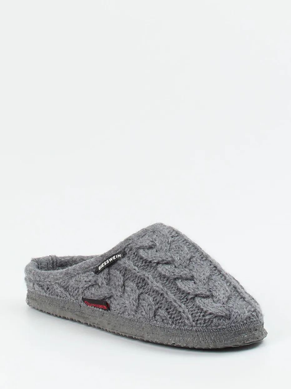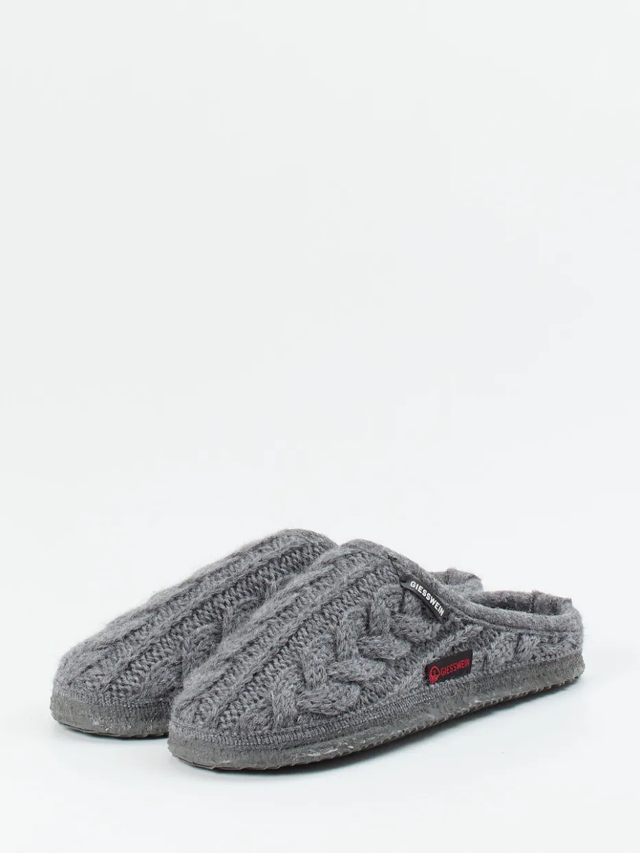 Gemütlich durch kühle Tage.Giesswein präsentiert einen hochwertigen Hausschuh für entspannte Momente. Perfekt für kalte Böden im Winter oder gemütliche Abende in den eigenen vier Wänden: Aus reiner, weicher Schurwolle gefertigt, trägt sich das graue Modell mit filziger Haptik besonders angenehm. Das klassische Zopfmuster in Ton-in-Ton sowie die offene Ferse unterstreichen den loungigen Charakter. Eine flexible, mit Naturkautschuk beschichtete Gummisohle sorgt für Trittsicherheit. Dank wohnlicher Formgebung und alpine-inspirierter Details passt der Schuh ideal zur Loungewear oder zu Wollsocken. Ein langlebiger Begleiter für authentischen Giesswein-Komfort.