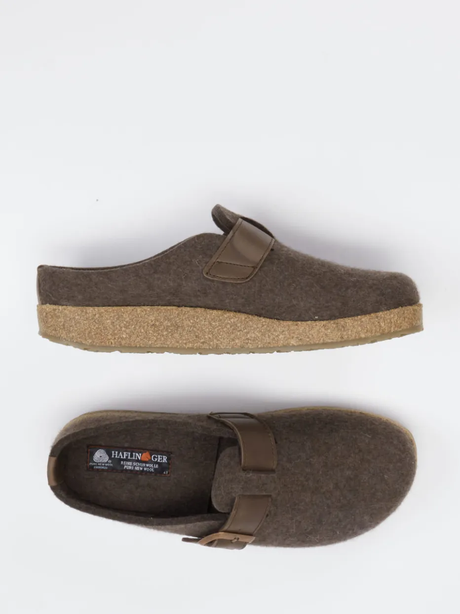 Wärmender Komfort trifft auf natürliche Funktion.Haflinger präsentiert mit diesen Unisex-Clogs einen Hausschuh, der Komfort und Design verbindet. Der mittelbraune Hausschuh aus reiner Schurwolle zeigt eine filzige Oberfläche und ein ergonomisch geformtes Kork-Latex-Fußbett – perfekt für entspannte Stunden daheim oder lässige Freizeitlooks. Die offene Ferse und die messingfarbene Schnalle verleihen dem Modell einen modernen Lounge-Charakter. Strukturierte Gummisohle und dezente Ton-in-Ton-Nähte runden die Optik ab. Inspiriert vom „Comfort Core“-Trend, steht er für eine natürliche, reduzierte Ästhetik. Besonders harmonisch wirkt er zu Wollsocken und Fleece-Loungewear. Ein Wohlfühlprodukt mit funktionalem Designanspruch und konsequentem Materialfokus.