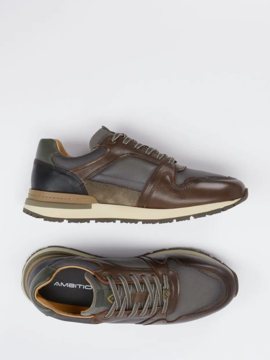 Retrolook trifft Funktionalität.Ambitious bringt mit diesem Herren-Sneaker im Retro-Runner-Stil ein stilvolles Modell für Herbst und Winter in die Freizeitgarderobe. Glattes Kalbleder wird durch Mesh- und Velourszonen ergänzt und bietet zusammen mit dem textilen Futter einen gelungenen Materialmix. Die dunkle Farbpalette aus Braun, Grau und Olivgrün verleiht ihm eine robuste Optik, unterstützt durch gepolsterten Schaftrand, zweifarbige Schnürsenkel und Outdoor-Profilsohle aus Gummi. Urban Utility trifft hier auf Retro-Sportswear – ideal für den Alltag oder leichte Outdoor-Aktivitäten. Kombiniert mit einer Outdoorjacke entsteht ein harmonischer Look. Ambitious steht bei diesem Modell für durchdachtes Design mit hochwertigem Materialeinsatz.