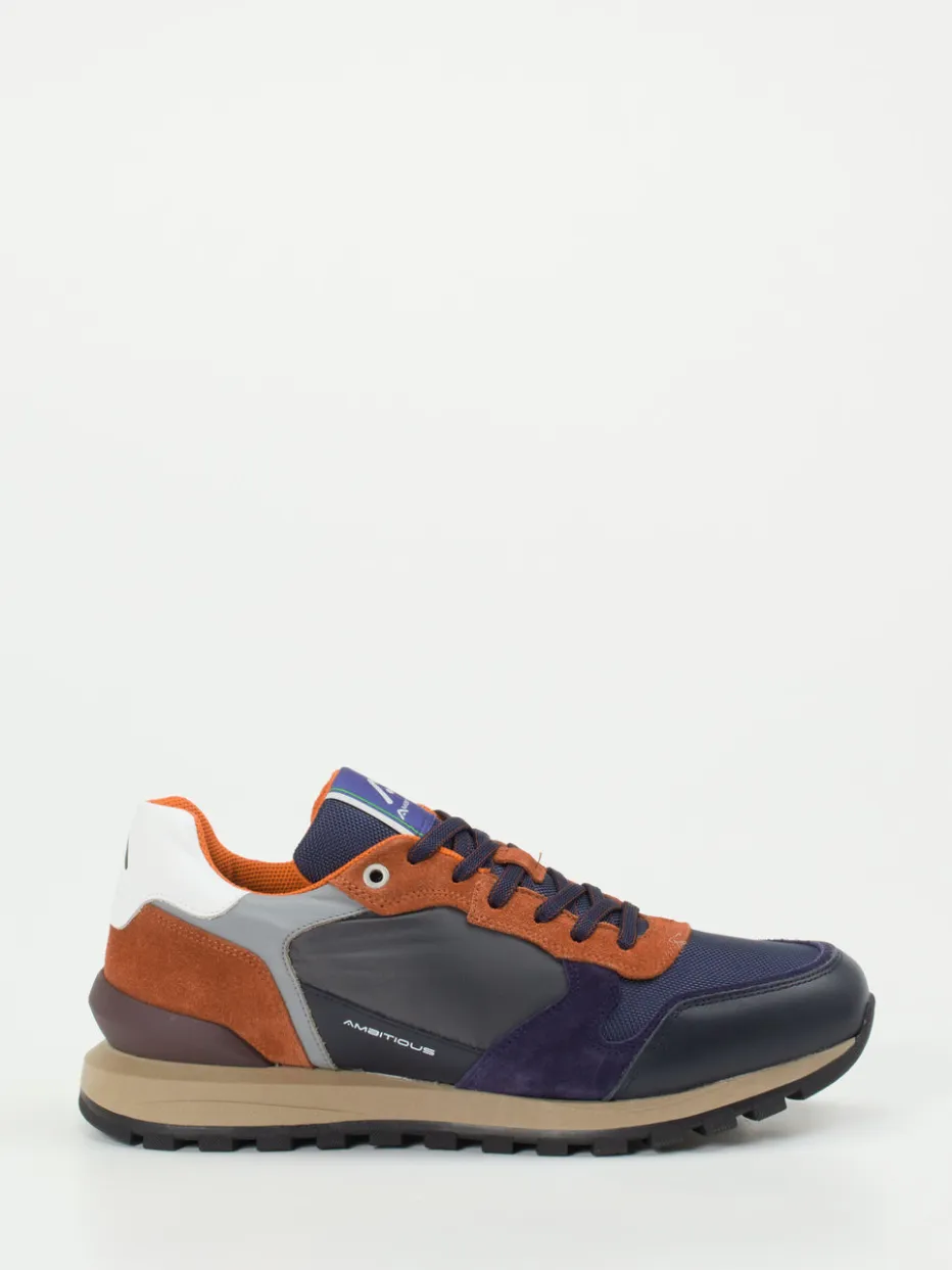 Farbspiel im klassischen Runner-Stil.Ambitious präsentiert einen sportiv-eleganten Herren-Sneaker aus der Retro-Running-Kategorie. Für lässige Freizeitmomente mit modischem Anspruch bietet dieses Modell eine Kombination aus samtigem Veloursleder und atmungsaktivem Mesh. Die blaue Grundfarbe trifft auf rostbraune und graue Akzente im angesagten Color-Blocking-Stil. Die klassische Silhouette mit gepolstertem Schaft, robustem Textilfutter und profilierter Gummisohle garantiert angenehmen Tragekomfort. Logo-Details an Seite und Zunge setzen dezente Markenakzente. Ideal zu Jogpants oder urbanem Denim. Ein stylischer Alltagsbegleiter mit durchdachter Funktionalität und Markencharakter.