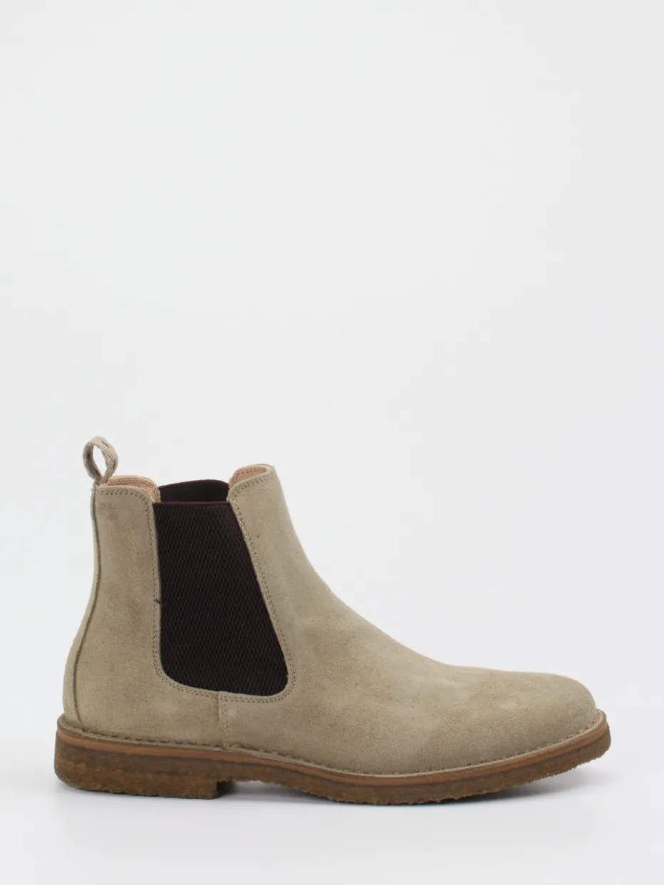 Unaufdringliches Design mit Charakter.Astorflex interpretiert klassische Chelsea Boots neu – mit dem Fokus auf Materialqualität und Formenreduktion. Ideal für urbane Herbsttage oder entspannte Bürolooks: Das matt strukturierte Veloursleder in dezentem Beigegrau trifft auf seitliche Elastikeinsätze und eine tonale Gestaltung. Die knöchelhohe Form ergänzt die naturfarbene Kreppsohle nicht nur funktional, sondern auch ästhetisch. Textilzuglaschen vorn und hinten erleichtern den Einstieg, während die hochwertige Verarbeitung ein langlebiges Tragegefühl bietet. Minimalistische Details und das Unisex-Design ordnen das Modell dem Quiet-Luxury-Trend zu. Kombiniert mit einem Kaschmerschal oder einem cleanen Wollmantel entsteht ein harmonischer Herbststil. Perfekt abgestimmtes Traditionshandwerk – typisch Astorflex.