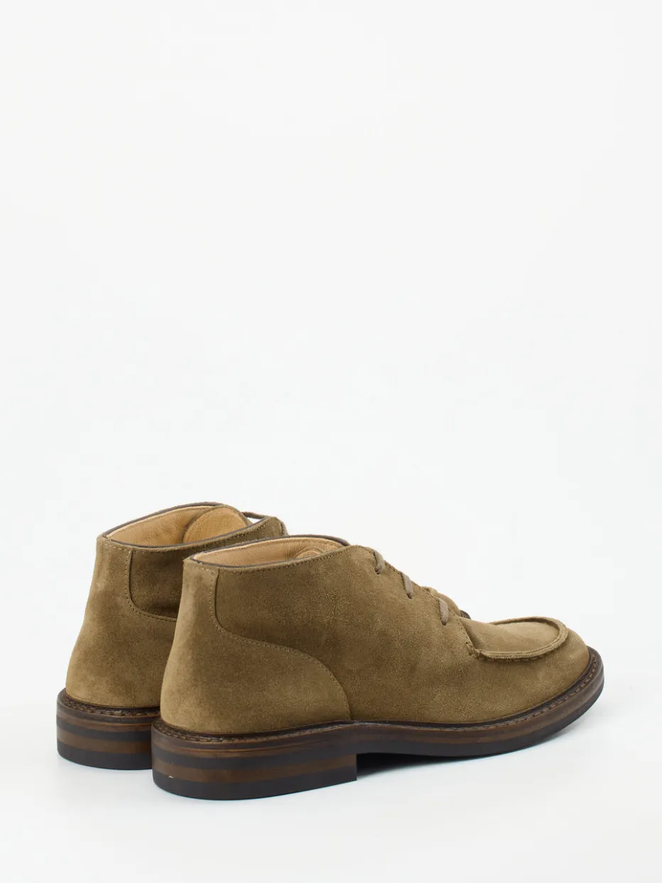 Stilvoll durch den Alltag.Astorflex präsentiert mit diesen Desert Boots ein Herrenmodell für hohe ästhetische und funktionale Ansprüche. Ob im Büro oder bei Wochenendaktivitäten – das sandbraune Veloursleder mit matter Oberfläche wirkt gleichzeitig robust und gepflegt. Feines Kalblederfutter sorgt für ein angenehmes Tragegefühl, die profilierte Kreppsohle bietet Bodenhaftung auf verschiedenen Untergründen. Markante Kontrastnähte, eine Schnürung mit drei Ösenpaaren und die klassische, knöchelhohe Form stehen für dezente Heritage-Ästhetik. Minimalistische Details platzieren den Schuh stilistisch im Trendfeld „Modern Classics“. Ein authentisch verarbeiteter Begleiter mit klarer Formensprache und subtiler Eleganz.