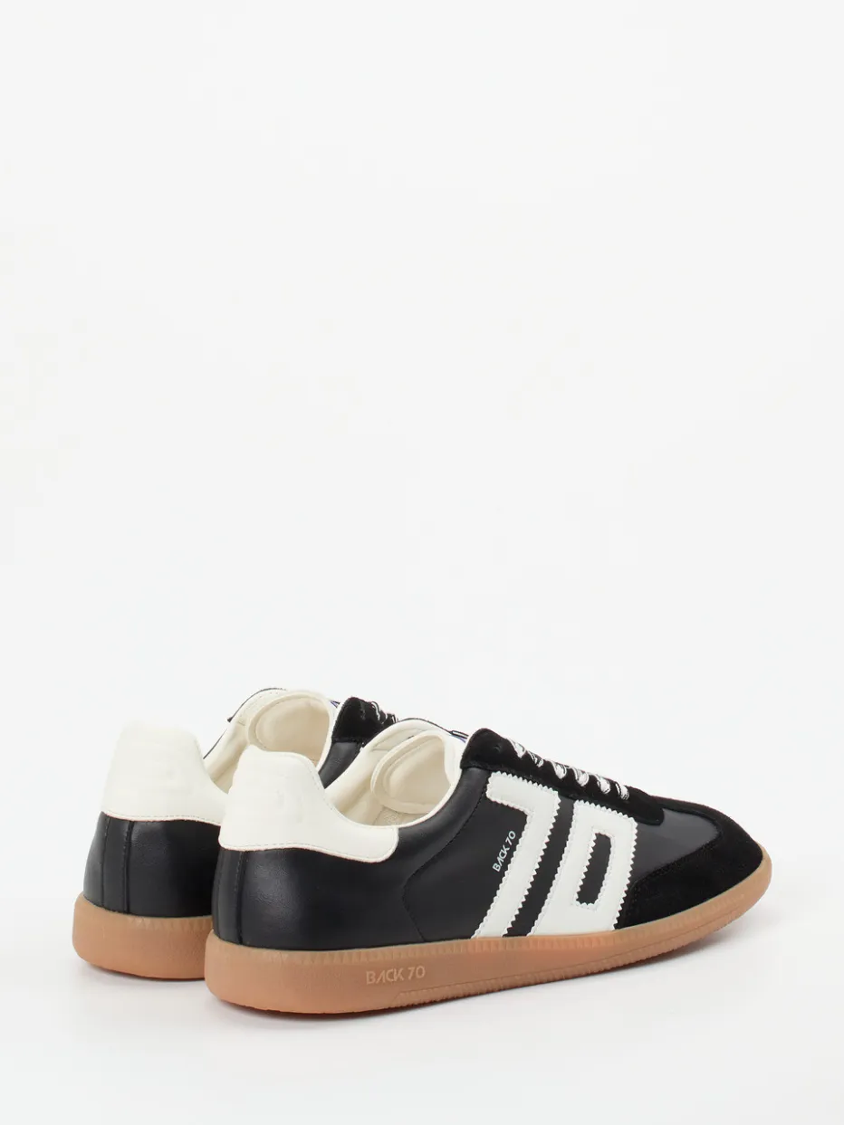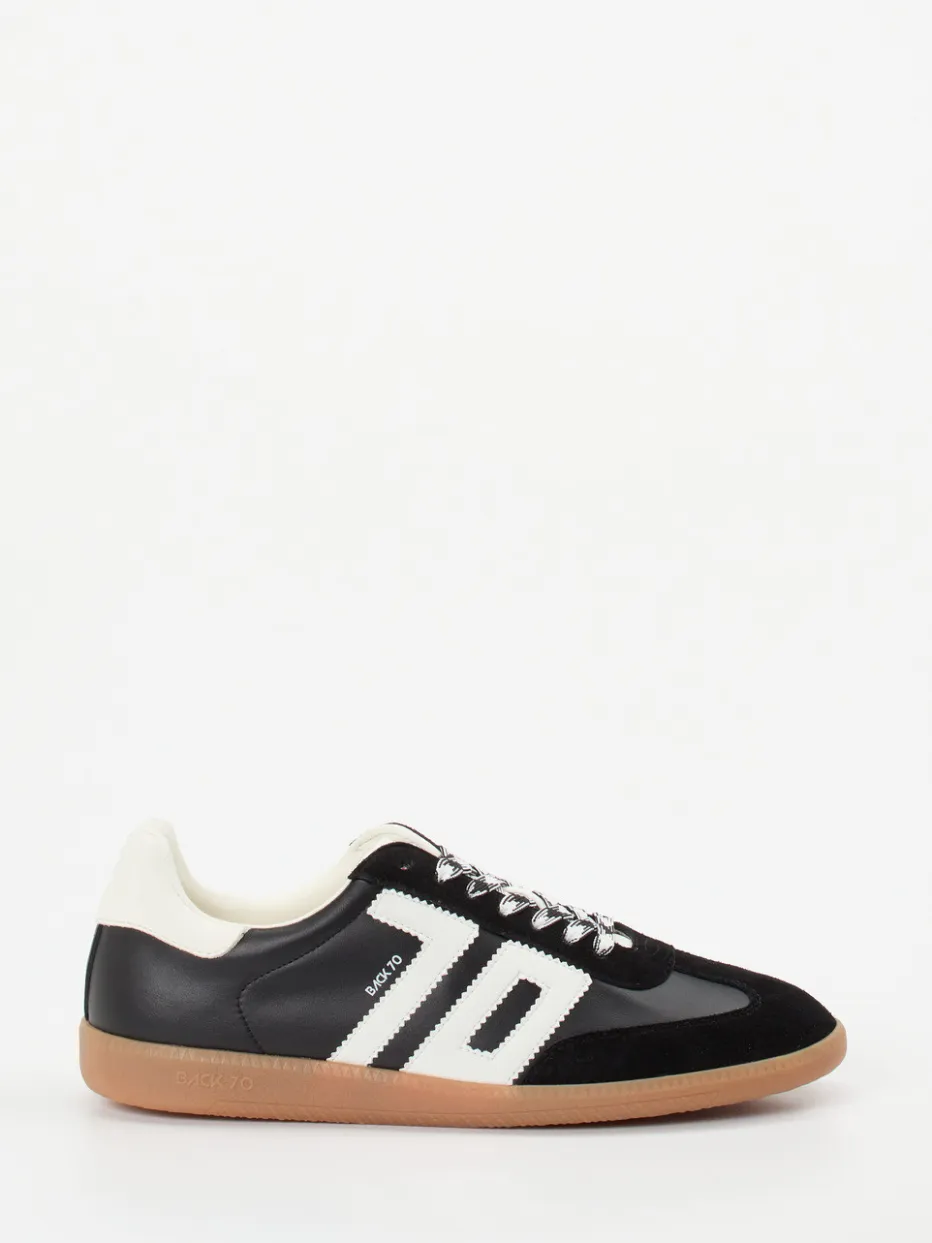 Kontrast, Komfort und Stil der 90er.Back 70 interpretiert den klassischen Retro-Sneaker neu. Perfekt für entspannte City-Tage überzeugt das Modell mit einem hochwertigen Mix aus glattem Leder und samtig angeschliffenem Veloursleder. Die dominante schwarze Farbgebung wird durch weiße Logos und gummibraune Akzente an der Sohle kontrastiert. Zweifarbige Schnürsenkel, eine gepolsterte Ferse und eine griffig profilierte Gumsohle unterstreichen den sportiven Vintage-Charakter, während das Frotteefutter den Tragekomfort erhöht. Ein echtes Highlight für trendbewusste Streetwear-Looks. Markentypischer Materialmix trifft auf retroinspiriertes Design und moderne Alltagstauglichkeit.