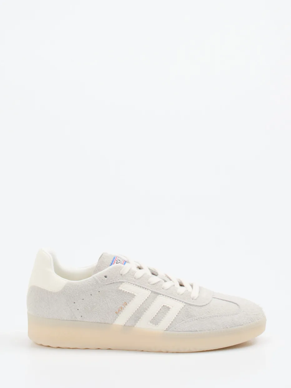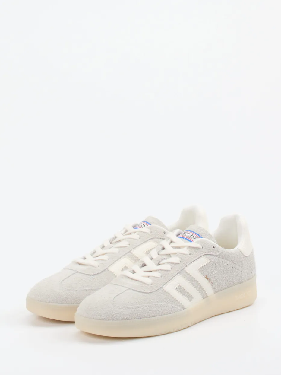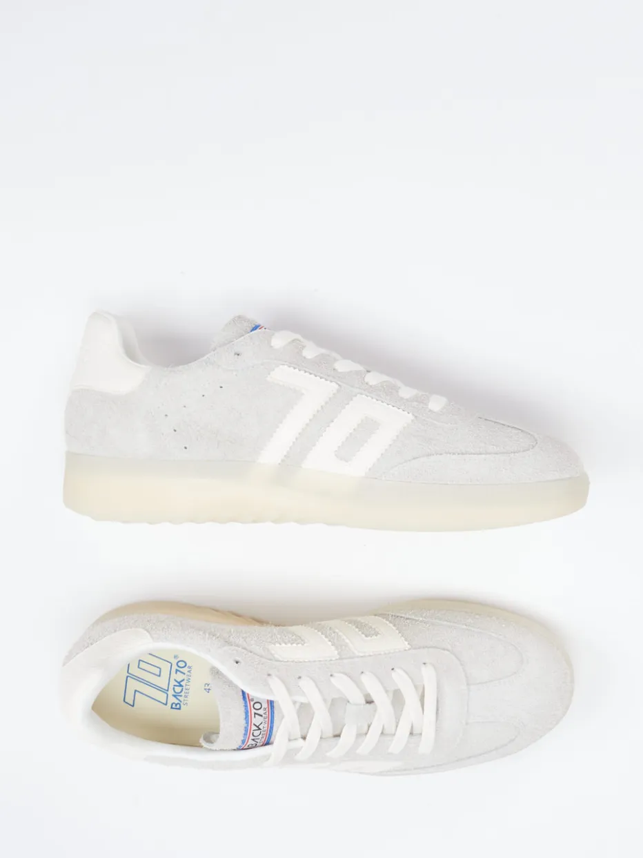 Neutrale Ikone im 90s-Vintage-Stil.Der Retro-Sneaker von Back 70 verbindet kultige 70er-Ästhetik mit aktuellen Streetwear-Impulsen. Ideal für lässige Alltagslooks – das samtig angeschliffene Veloursleder in Hellgrau trifft auf eine cremefarbene, milchig-transparente Gummisohle mit markentypischem Logodetail. Ton-in-Ton-Nähte, weiße Overlays und das 70s-Branding auf Ferse und Zunge runden den klassisch flachen Schnitt ab. Der atmungsaktive Textil-Innenschuh und ein herausnehmbares Fußbett bieten zusätzlichen Komfort. Mit einem Mood zwischen „Quiet Luxury“ und 90s-Reminiszenz lässt sich der unisex Sneaker vielseitig stylen – zum Beispiel mit Jogpants oder Oversized Hoodies. Markentypischer Retro-Look trifft auf modernen Minimalismus.