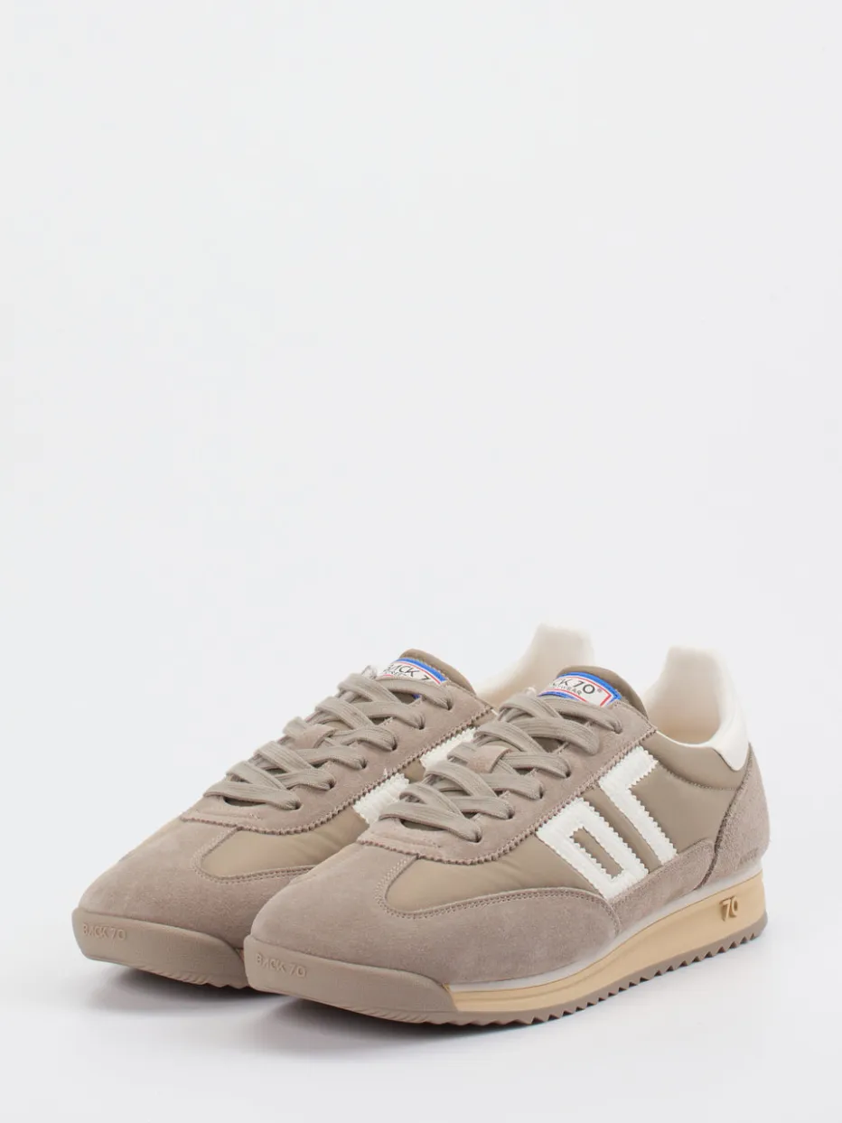 Vintage trifft Moderne im dezenten Taupe.Back 70 präsentiert mit diesem Sneaker einen stilvoll interpretierten Retro Runner für die Freizeit. Ob beim Stadtbummel oder in lockerem Freizeitambiente – der Sneaker überzeugt durch seinen unisex-gerechten Materialmix aus Veloursleder, samtig angeschliffen, und luftigem Nylon. Das Taupe-farbene Obermaterial wird durch offwhite Akzente und eine kontrastierende Logo-Applikation ästhetisch ergänzt. Die schmal zulaufende Form, profilierte Gummisohle und tonige Nähte betonen die Vintage-Anmutung mit alltagstauglichem Komfort. Ideal kombinierbar mit neutralen Streetwear-Looks. Ein ausgewogener Stil zwischen Funktion und Trendbewusstsein – mit markentypischem Retro-Flair.