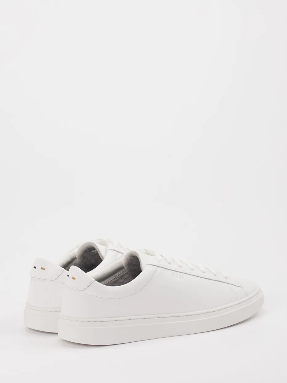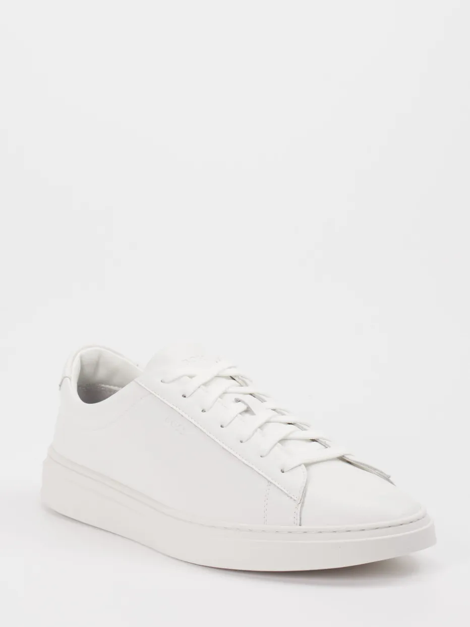 Clean Design für Alltag und Büro. Der Herren-Sneaker von Boss bringt stilvolle Zurückhaltung in die moderne Freizeitgarderobe. Ideal für alle, die Wert auf klare Linien und modernen Minimalismus legen: Das weiße Obermaterial aus Kalbleder zeigt sich mit glatter Oberfläche und Ton-in-Ton-Nähten. Die klassische Low-Top-Form mit rundem Leisten und gepolstertem Schaftrand sorgt für optimalen Tragekomfort. Besonders gelungen sind die dezenten Branding-Details und das Innenfutter mit Recyclinghinweis. Die strukturierte Gummisohle bietet sicheren Halt im Alltag. Lässt sich mühelos zu hellen Chinos oder neutralen Denim-Looks stylen. Ein Premium-Sneaker mit cleanem Look – typisch Boss.