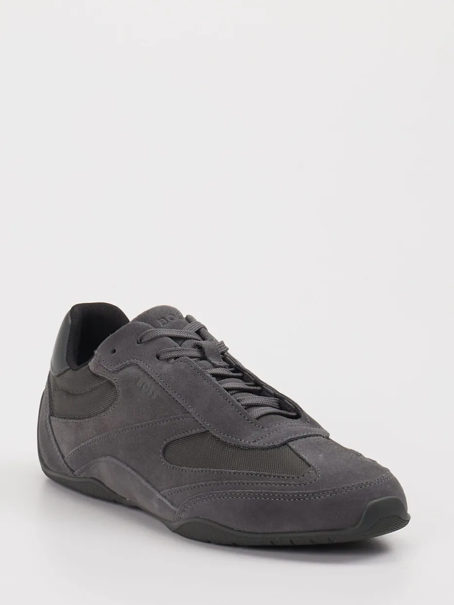 Monochromer Stil trifft Retro-Dynamik. Die Marke Boss zeigt mit diesem Herren-Sneaker einen Low-Top im sportlich inspirierten Design. Ideal für urbane Alltagsmomente verbindet das Modell hochwertigen Veloursleder-Textil-Mix mit atmungsaktivem Mesh. Der anthrazitgraue Ton unterstreicht den minimalistischen Gesamtlook, während Ton-in-Ton-Nähte und Logo-Prägungen feine Details setzen. Eine gummierte Profilsohle bietet Grip, die verstärkte Ferse Stabilität, und die klassische Schnürung sorgt für sicheren Halt. Stilistisch bewegt sich der Sneaker im Spannungsfeld zwischen Streetwear und Retro Runner Trend – perfekt für lässige Kombinationen mit Jogpants oder Techwear. Boss überzeugt hier mit einem durchdacht designten, monochromen Alltagsbegleiter voller souveräner Zurückhaltung.