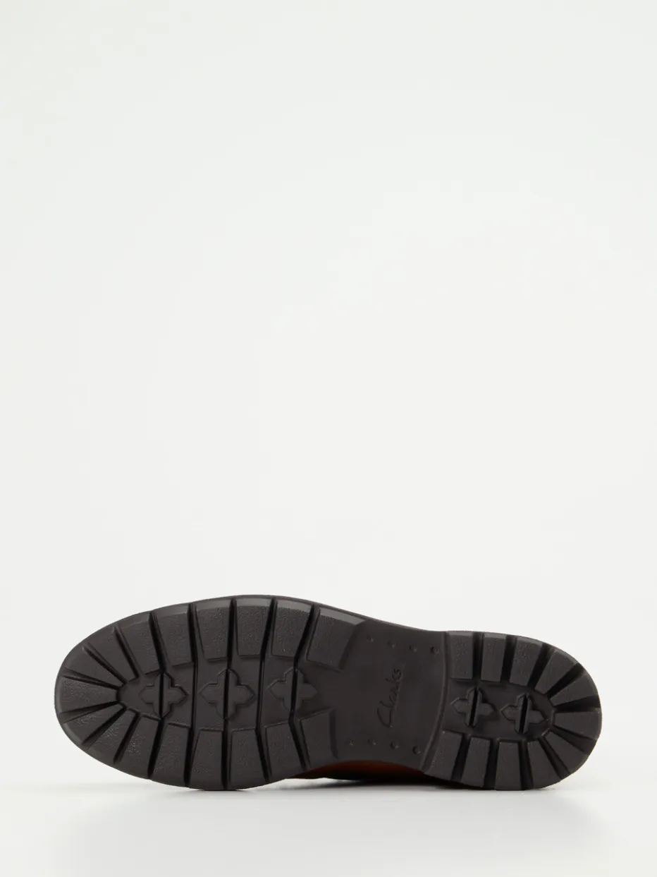 Wetterfestes Design trifft Utility-Charme.Clarks präsentiert mit diesen Herren-Schnürboots ein funktionales Modell für Alltag und Freizeit. Ob bei herbstlichen Spaziergängen oder urbanen Abenteuern: Das wasserabweisend ausgerüstete Glattleder in sattem Cognacbraun zeigt sich mit leichtem Farbverlauf und genarbter Oberfläche besonders markant. Die knöchelhohe Form mit Zuglasche, Schnürung über Metallösen und einer stark profilierten, dunkelbraunen Gummisohle bietet Halt und Komfort bei jedem Schritt. Workwear-inspirierte Details und die Gore-Tex-Ausstattung unterstreichen den langlebigen Anspruch. Kombiniert mit Flanellhemd oder Outdoorjacke wirkt der Look kernig und stilsicher. Idealer Begleiter für herbstliche Aktivitäten mit Clarks-typischem Komfortanspruch.