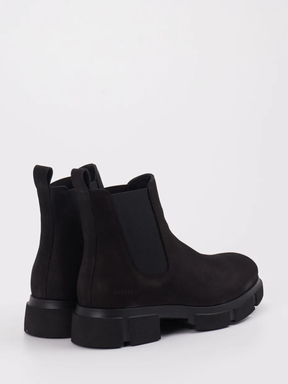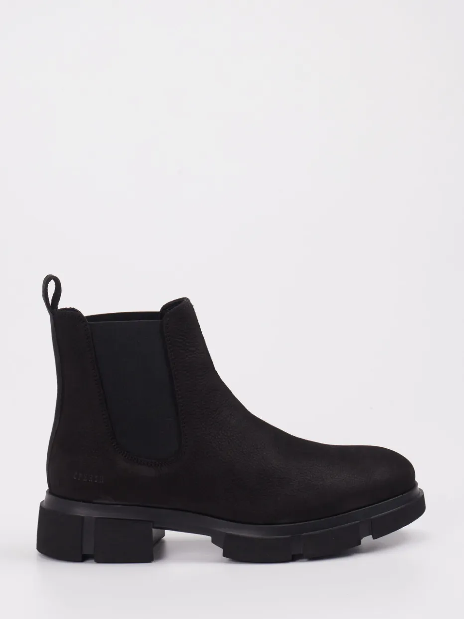 Statement für urban orientierte Looks.Die Marke Copenhagen interpretiert klassische Chelsea Boots neu und kombiniert minimalistisches Design mit markanter Profilsohle. Ideal für den Weg ins Büro oder den Spaziergang durch die Stadt bietet dieses Modell mit schwarzem, samtig angeschliffenem Nubukleder und tonalen Elastikeinsätzen ein stimmiges Gesamtbild. Sein knöchelhoher Schnitt und die praktischen Zuglaschen unterstreichen die klare Silhouette. Die robuste Gummisohle mit tiefem Profil sorgt für Trittsicherheit und verleiht dem Schuh eine moderne Streetwear-Attitüde, ganz im Sinne der aktuellen Chunky-Sohle-Trends. Ein klares Designstatement mit dänischem Stilbewusstsein.