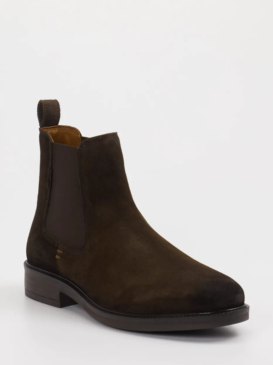 Gefertigt aus edlem Veloursleder mit matter Oberfläche, zeigt dieses Modell eine knöchelhohe Silhouette mit seitlichen Elastikeinsätzen und funktionaler Zuglasche. Die rutschhemmende Gummisohle bietet sicheren Tritt bei wechselhaftem Wetter. Die unifarbene Ausführung greift den „Quiet Luxury“-Trend auf und lässt sich vielseitig kombinieren – ob zum Wollmantel im Business-Kontext oder zur Chino im Casual-Stil.