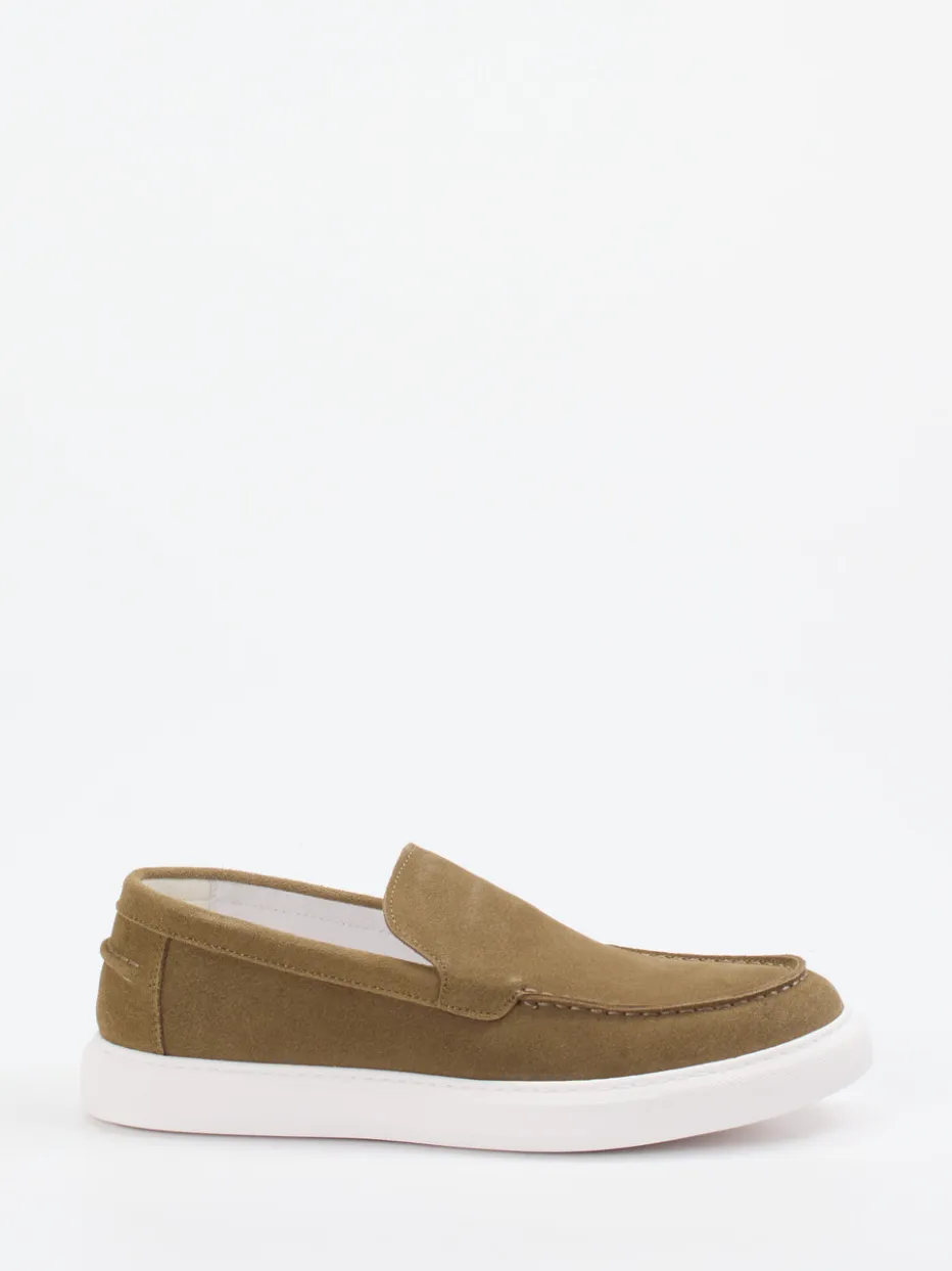 Das sandbraune Lammleder mit samtig-matter Veloursoberfläche wirkt zurückhaltend edel und lässt sich vielseitig kombinieren. Ton-in-Ton-Nähte und eine markant weiße Gummisohle unterstreichen das modern-minimalistische Gesamtbild. Die elastische Einstiegspartie und das softe Lederfutter ermöglichen ein komfortables Tragen – auch barfuß. Inspiriert vom „Quiet Luxury“-Trend, vereint das Modell Retro-Anmutung mit zeitgemäßer Leichtigkeit. Idealer Styling-Partner zu Chinos und leichten Pullovern.