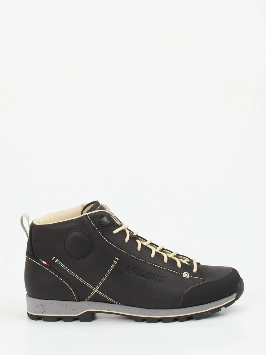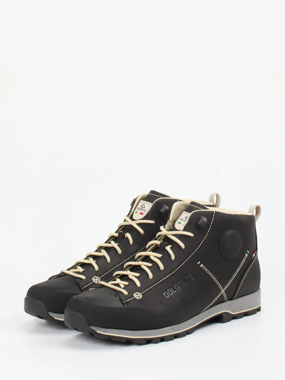 Wanderschuh im stilvollen Retro-Look.Dolomite 1897 präsentiert einen Mid-Cut-Wanderschuh für aktive Tage in Natur und Stadt. Für Wanderungen und Spaziergänge bei wechselhaftem Wetter gemacht: Das LWG-zertifizierte Fettleder in mattem Schwarz wird durch cremefarbene Schnürsenkel und robuste Kontrastnähte akzentuiert. Die klassische Silhouette erhält durch das geprägte Seitenlogo und die mehrfarbige Vibram-Profilsohle eine funktionale Note. Ein Textilfutter sowie das herausnehmbare Fußbett aus recyceltem Mesh sorgen für Komfort. Retro-inspirierte Details treffen den Gorpcore-Trend. Besonders gut kombinierbar mit Funktionsjacke oder Outdoor-Rucksack. Stilvolles Design und nachhaltige Materialien – Qualität aus dem Hause Dolomite.