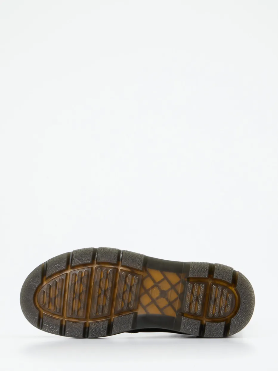 Streetstyle mit Kultstatus.Dr. Martens interpretiert klassische Chelsea Boots auf robuste Art. Das Modell aus schwarzem, strapazierfähigem Kalbleder passt perfekt zu urbanen Szenarien mit wechselhaften Bedingungen. Die matte Oberfläche in Tiefschwarz wird durch gelbe Kontrastnähte und eine seitliche Elastikpartie markant akzentuiert. Dank Zugschlaufe schlüpft man mühelos hinein. Die klobige, halbtransparente Profilsohle sorgt für Grip und Referenz an Utility-Trends wie Workwear oder Chunky Boots AW24. Ideal für den Alltag oder einen stylischen Outdoor-Auftritt. Ein Statement-Schuh mit unverkennbarer Handschrift von Dr. Martens.