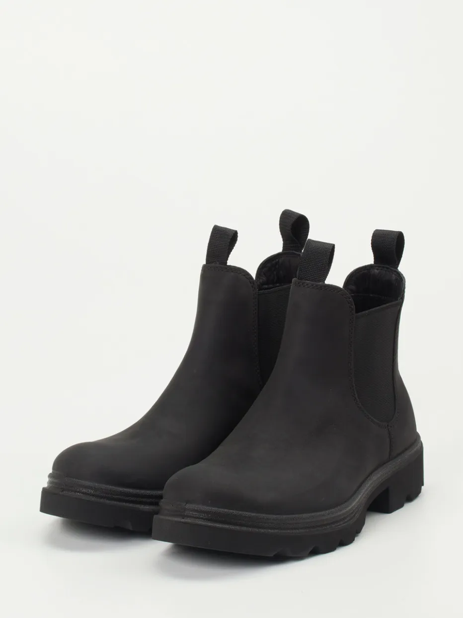 Minimalistisch. Praktisch. Alltagstauglich.Die Chelsea Boots von Ecco interpretieren klassische Outdoor-Tauglichkeit im urbanen Stil. Für widrige Herbsttage oder lange Städtespaziergänge – das schwarze Nubukleder mit matter Oberfläche ist wasserabweisend und pflegeleicht. Die seitlichen Elasteinsätze und Textil-Zuglaschen erleichtern den Einstieg, das gepolsterte, wechselbare Fußbett sorgt für zusätzlichen Komfort. Die robuste Gummisohle mit ausgeprägtem Profil verleiht Standfestigkeit und spiegelt zugleich den „Chunky Sole“-Trend wider. Silhouette und Finish folgen dem „Quiet Luxury“-Zeitgeist mit klarer, zurückhaltender Formgebung. Funktional kombinierbar mit Thermo-Leggings oder Urban Outdoor-Looks. Ecco setzt auf kompromisslosen Komfort in klarer Formsprache.