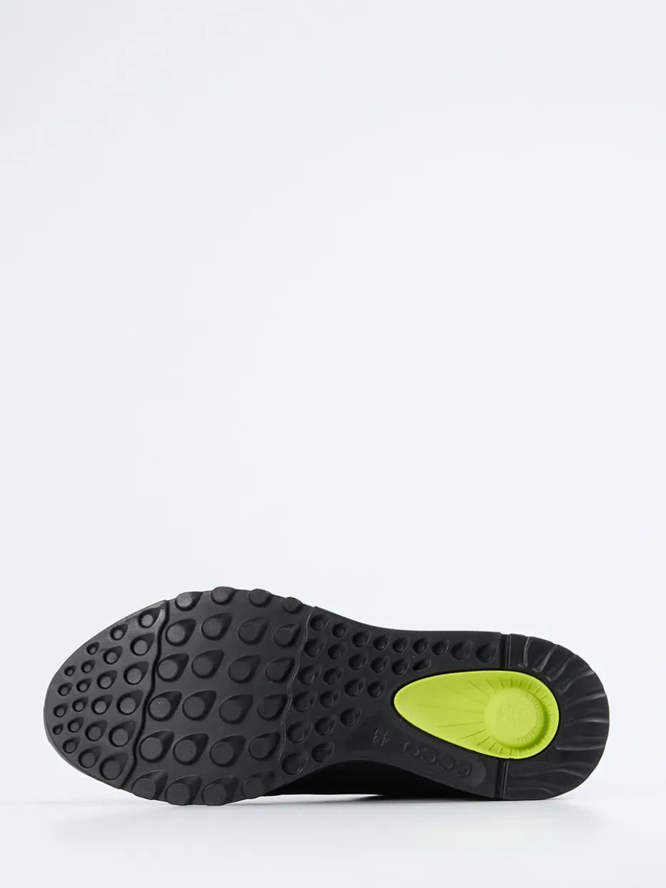 Vielseitiger Komfort in urbanem Design.Ecco präsentiert mit diesem Herren-Sneaker eine stilvolle Alltagslösung mit funktionalen Details. Für nasses Herbstwetter oder spontane Stadtspaziergänge kombiniert das Modell geschmeidiges Lammleder mit einer wasserdichten GORE-TEX®-Membran. Die matte schwarze Oberfläche wirkt minimalistisch, während neonfarbene Akzente an der profilierten Laufsohle sportliche Dynamik einbringen. Der gepolsterte Schaftrand, Textilfutter und eine herausnehmbare Innensohle optimieren den Tragekomfort. Durch seine klassisch-sportliche Silhouette passt er zu funktionalen Streetwear-Looks. Ein durchdachter Schuh mit Ecco-typischer Passformqualität für anspruchsvolle Alltagsmomente.