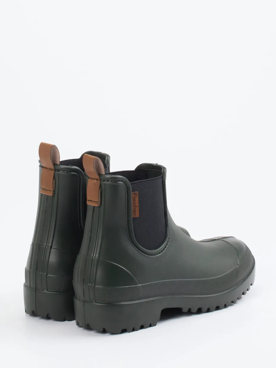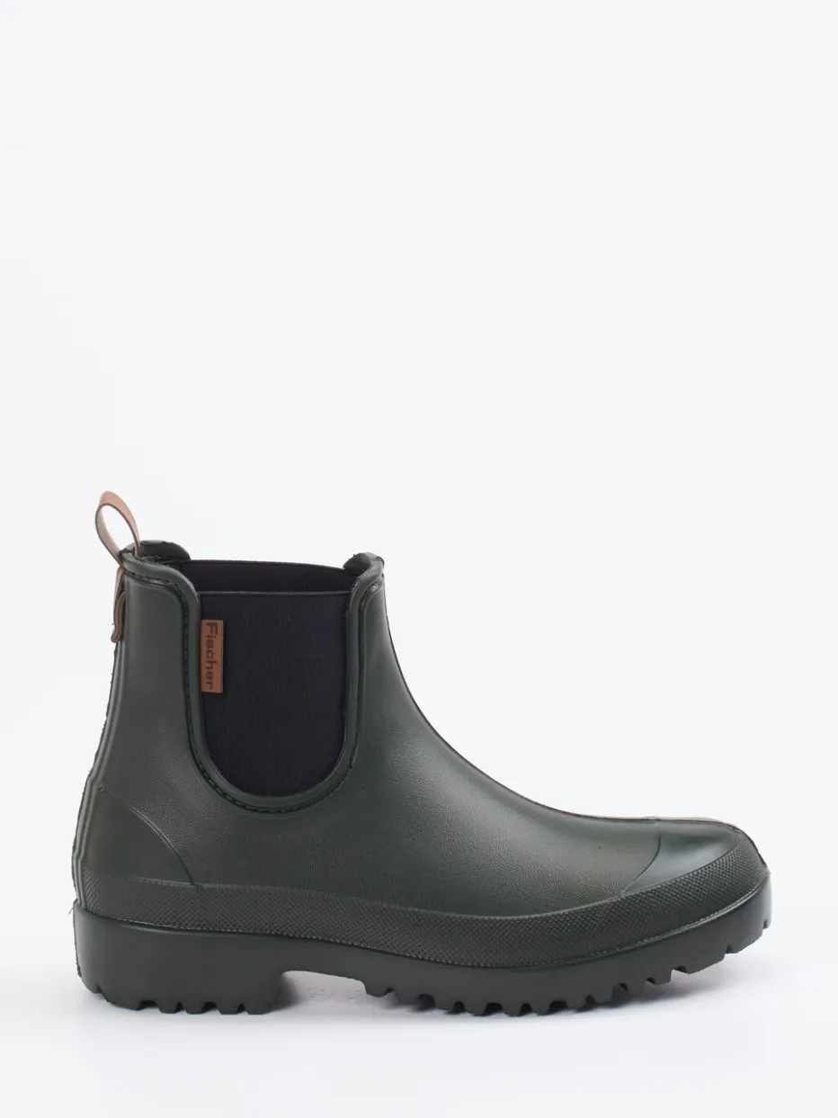 Der Fischer-Regenboot kombiniert robustes Synthetikmaterial mit griffiger Sohle und minimalistischem Design – eine wetterfeste Lösung für modebewusste Alltagsabenteurer.