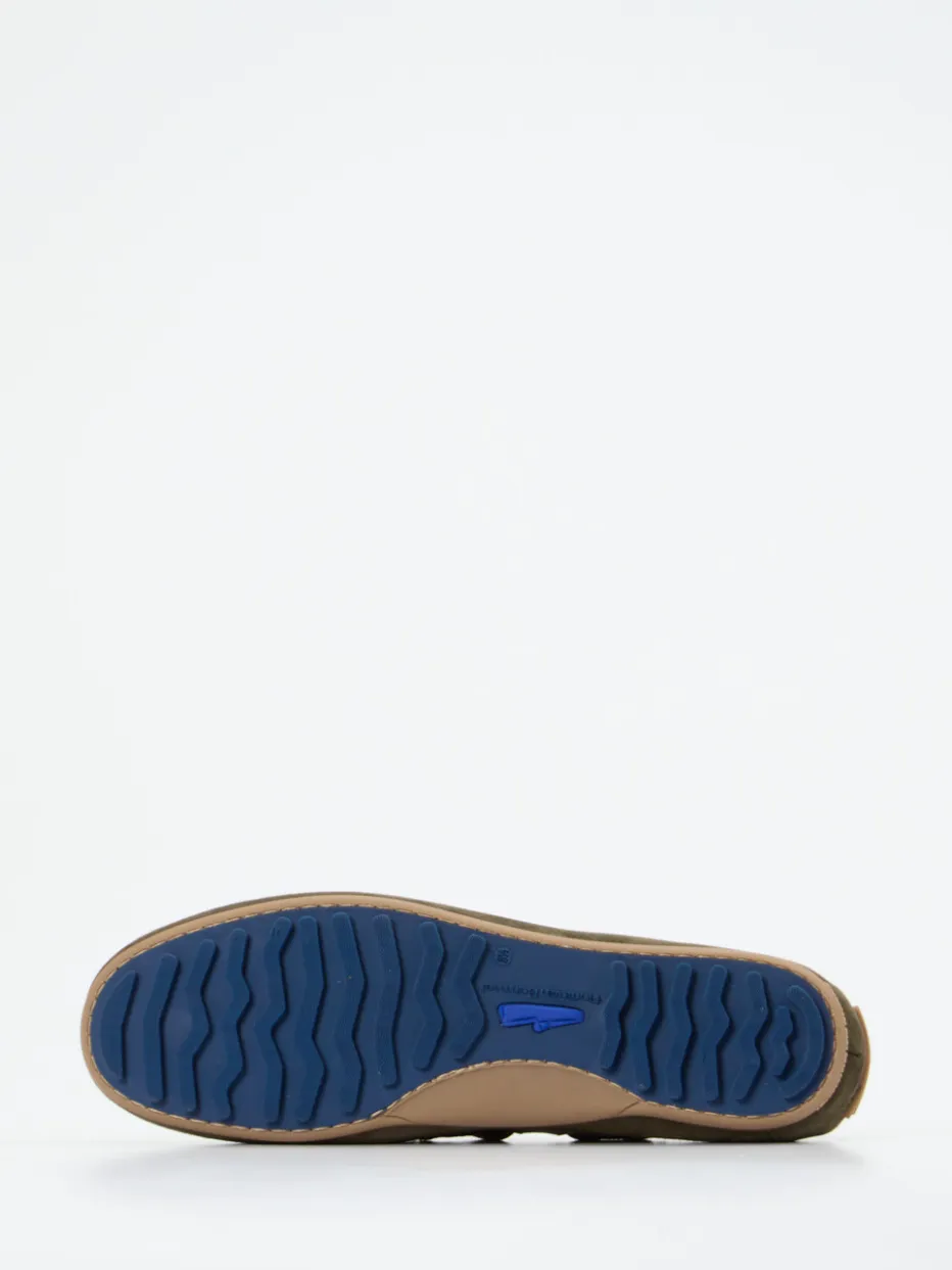 Ob für den Spaziergang entlang der Strandpromenade oder den entspannten Stadtbummel: Das weich angeschliffene Obermaterial bringt natürlichen Charme in den Alltag. Kontrastnähte, eine braune Rundum-Schnürung und die dunkelblaue Noppensohle setzen dezente Akzente und unterstreichen den Bootsschuh-Charakter. Das Kalblederfutter sorgt für ein angenehmes Fußklima, während die griffige Gummisohle zuverlässigen Halt bietet. Der klassisch-flache Schnitt und die schlupffreundliche Ausführung verleihen entspannte Lässigkeit. Ideal kombinierbar mit Leinenhemden oder Chinos.