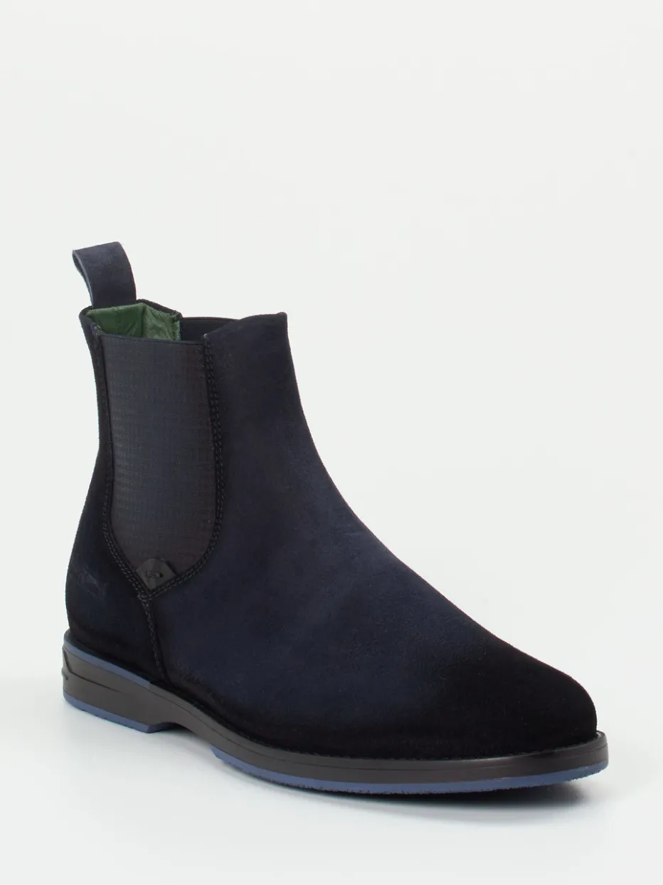 Puristische Chelsea-Silhouette mit eleganter Note.Galizio Torresi präsentiert maskuline Chelsea Boots im modernen Smart-Casual-Look. Für vielseitige Business- und Freizeitmomente entworfen, weisen diese knöchelhohen Boots ein Obermaterial aus hochwertigem Kalbleder auf, samtig angeschliffen für eine matte Optik. Das strukturierte Elastikmaterial an den Seiten sorgt für Komfort beim Schlupf, während die Zuglasche am Schaftrand die Handhabung erleichtert. Dezente Ton-in-Ton-Nähte, Logoprägung im Fersenbereich und ein farblich akzentuiertes Gummiprofil unterstreichen den reduzierten Stil. Farblich dominiert ein elegantes Dunkelblau – besonders kombinierbar zu monochromen Looks und Wollmänteln. Ein zuverlässiger Begleiter mit leiser Raffinesse und handwerklicher Souveränität.