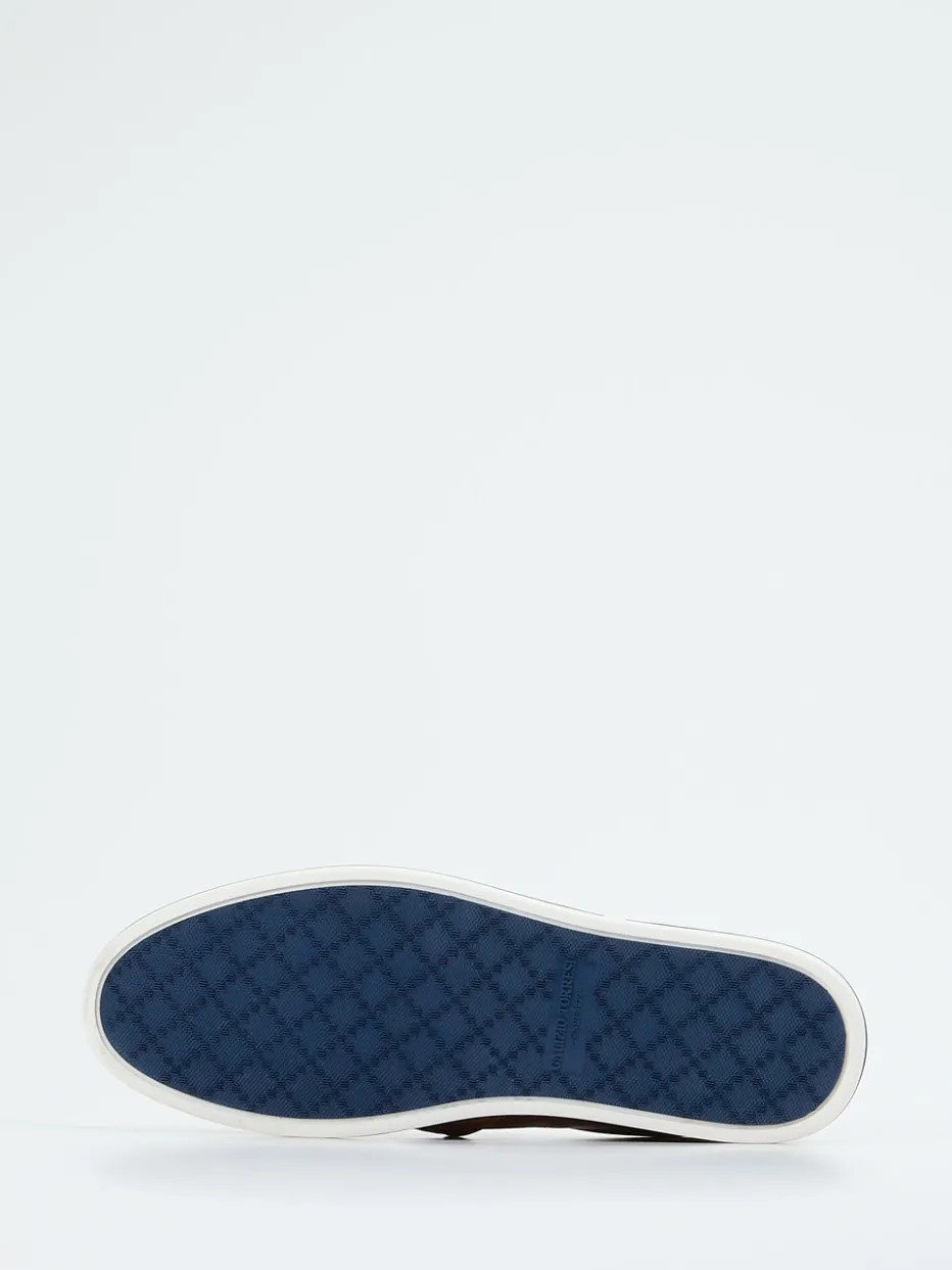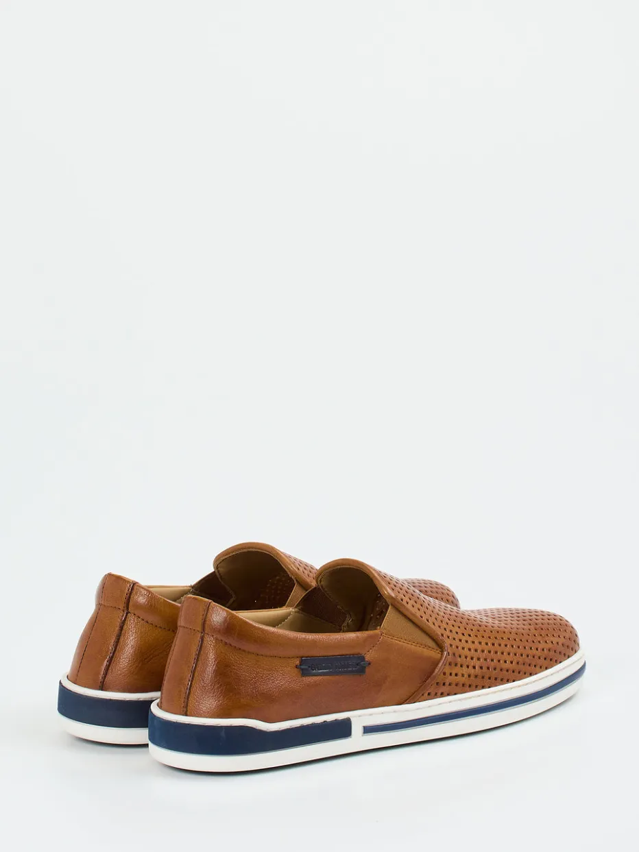 Der cognacfarbene Slip-On-Sneaker von Galizio Torresi überzeugt mit weichem Kalbleder, perforierter Optik und rutschhemmender Sohle. Ein stilvoller Begleiter für sommerliche Freizeitlooks.