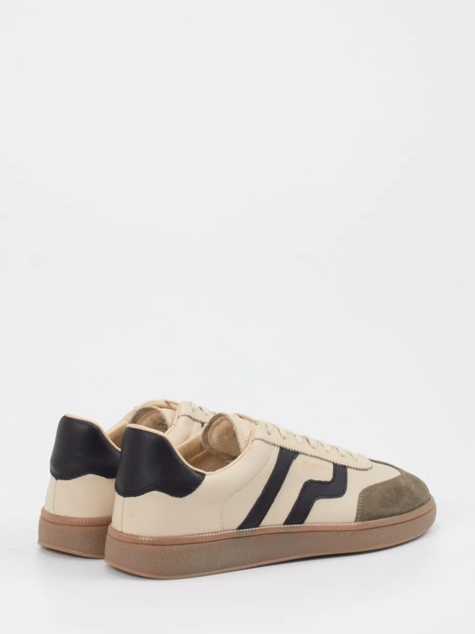 Unaufgeregt stilvoll im Retro-Look.Gant präsentiert einen Herren-Sneaker in klassisch flacher Silhouette, der Vintage-Flair mit dezenter Raffinesse verbindet. Ideal für stilbewusste Freizeitmomente vereint der Sneaker samtig angeschliffenes Veloursleder mit glattem Leder – beide in harmonischen Beigetönen. Akzente in Olivbraun und Schwarz ergänzen das dezente Farbschema, während die Ton-in-Ton-Nähte und ein goldfarbener Logoprint zeitlose Eleganz ausstrahlen. Die rutschhemmende Gummisohle, die verstärkte Fersenkappe und die klassische Schnürung bieten Komfort und Stabilität. Ein subtiler Begleiter für urbane Looks im Zeichen des Quiet Luxury. Der Sneaker kombiniert GANTs designorientierte Tradition mit langlebiger Lederqualität.