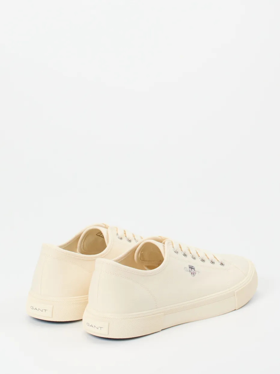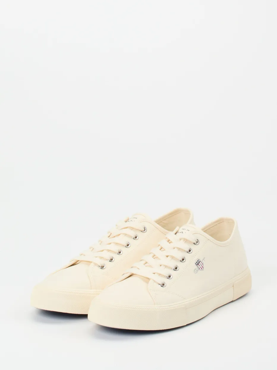 Maritimer Klassiker neu interpretiert.Gant präsentiert einen Low-Top-Sneaker für Herren aus beigefarbenem Canvas. Ob bei Spaziergängen entlang der Promenade oder im urbanen Alltag – das atmungsaktive vegane Textil bietet angenehmen Tragekomfort selbst an warmen Tagen. Die matte Oberfläche in Cremeweiß trifft auf eine kontrastierende marineblaue Gummisohle mit Fischgrätprofil. Dezente Highlights wie Metallösen und eine saubere Logo-Stickerei auf der Seite unterstreichen den reduzierten Look. Die flache Silhouette und das gepolsterte Fußbett runden den funktionalen Stil ab. Passt perfekt zu Chino-Shorts oder leichten Leinenhosen. Leicht, stilbewusst und klar im Ausdruck – Gant überzeugt mit unaufgeregter Markenästhetik.