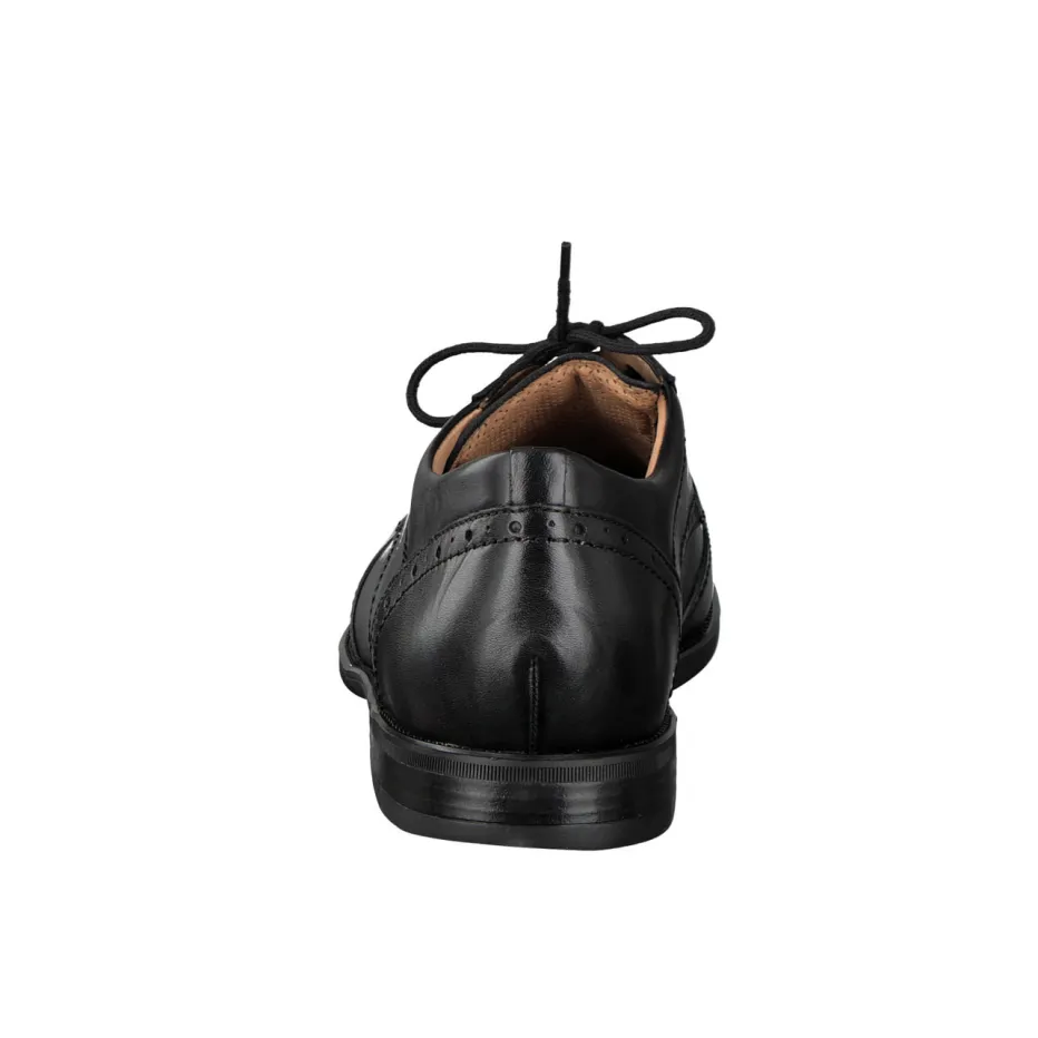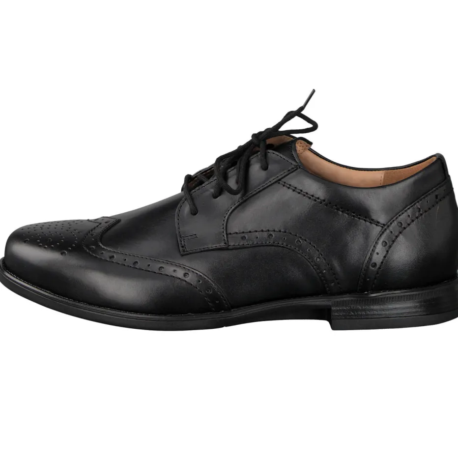 Ideal für lange Tage im Office oder stilvolle Events überzeugt das Modell durch hochwertiges Kalbleder mit matt-glatter Oberfläche und edlen Brogue-Details. Der schwarze Schnürschuh zeigt eine geschwungene Silhouette mit Ton-in-Ton-Nähten, markanter Flügelkappe und stabiler Fersenkappe. Innen punktet er mit Lederfutter und orthopädischem Vario-Korkfußbett, das bei Bedarf herausnehmbar ist. Die Gummisohle bietet Abrolldynamik und Gelenkschonung. Dezente Eleganz, passend zum ‚Quiet Luxury‘-Trend.