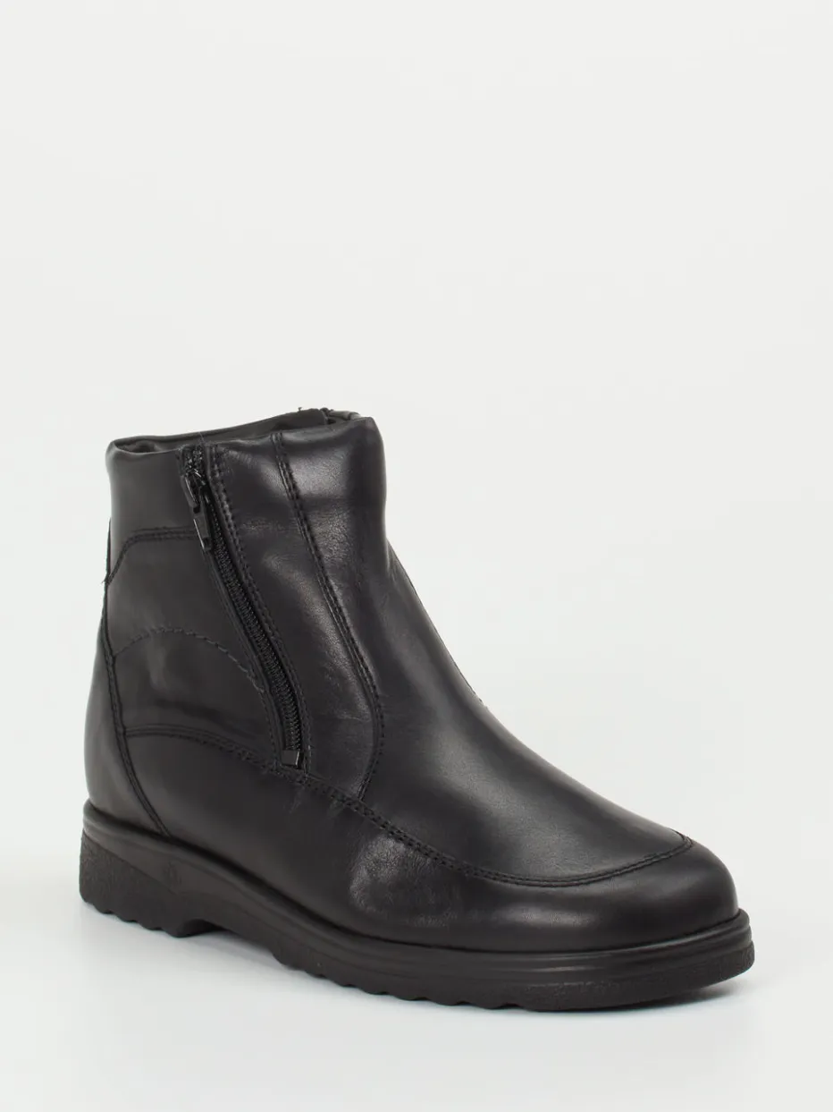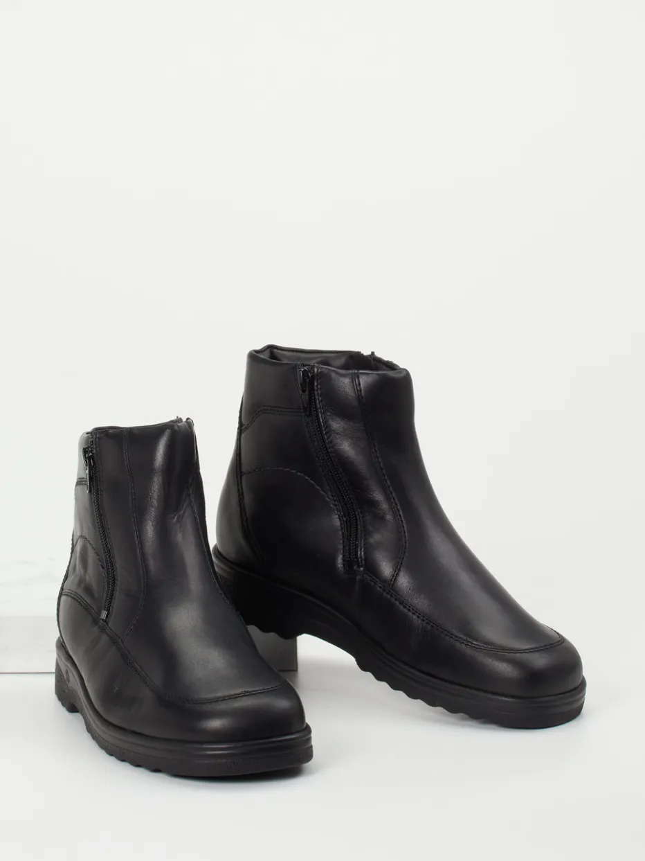 Wenn Kälte und Nässe dominieren, sorgt das weiche Lammfellfutter für angenehm warme Füße. Das schwarze Kalbleder ist matt verarbeitet und überzeugt durch seine klare, klassische Silhouette mit seitlichem Reißverschluss, rutschfester Profilsohle und Ton-in-Ton-Nähten. Die Schuhweite H und das herausnehmbare Fußbett bieten zusätzlich Platz und Anpassbarkeit. Minimalistisches Design trifft auf alltagstauglichen Komfort und fügt sich harmonisch in den „Quiet Luxury“-Trend ein. Besonders wirkungsvoll in Kombination mit einer warmen Thermoleggings oder gefütterten Winterjacke.