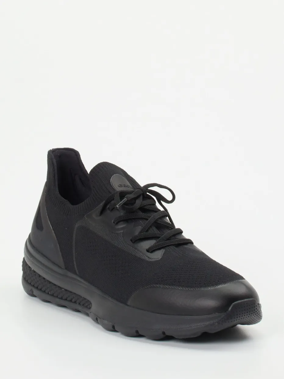 Schwarz trifft Struktur.Geox präsentiert mit diesem Herren-Sneaker ein minimalistisches Modell für Alltag und Freizeit. Das atmungsaktive Textilstrick-Obermaterial im Uni-Schwarz fügt sich nahtlos in sportlich-legere Styles. Mit sockenähnlichem Einstieg, asymmetrischer Schnürung und einer stabilisierten Fersenkonstruktion kombiniert der Schuh Komfort und moderne Linienführung. Die rutschfeste Gummisohle mit Geox Respira Technologie sorgt für Luftzirkulation und zuverlässige Dämpfung auch bei längeren Einsätzen. Streetwear-inspirierte Akzente treffen auf Techwear-Vibes. Ein All-Black-Sneaker mit technologischer Finesse und markentypischer Leichtgängigkeit.