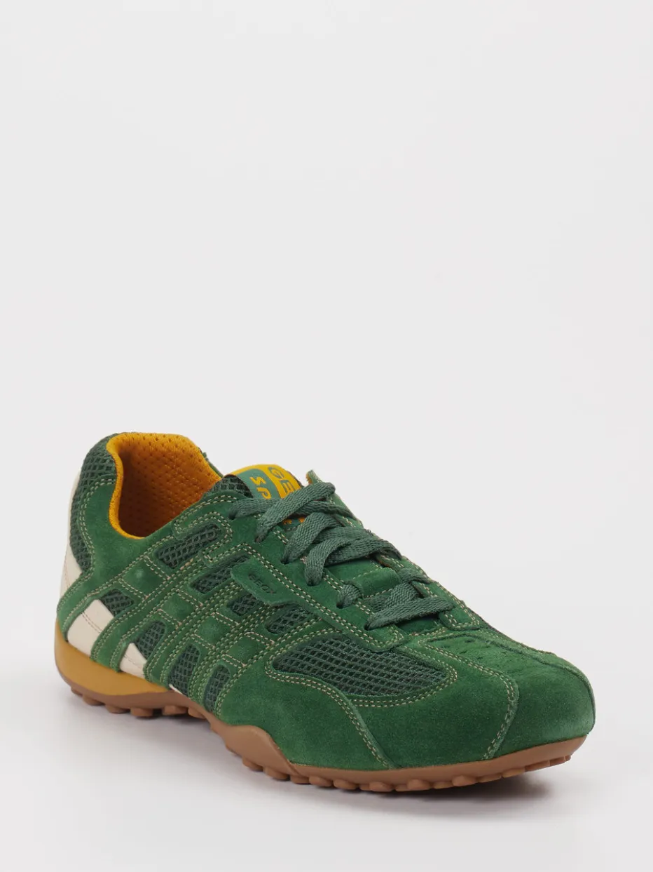 Retro trifft Technik – mit Stil. Geox präsentiert einen markanten Herren-Sneaker mit Retro-Sportswear-Flair und funktionalem Anspruch. Ideal für urbane Alltagswege: Dieser Low-Top-Sneaker kombiniert atmungsaktives Mesh mit grünem Veloursleder zu einem ausdrucksstarken Materialmix. Gelbe Kontrastnähte und eine cremefarbene Zweifarbsohle verleihen dem sportlich-flachen Design eine moderne Dynamik. Die bewährte Geox-Sohle mit Perforation sorgt für ein angenehmes Fußklima – auch bei aktiven Tagen. Die Kombinationsfreude mit Streetwear-Elementen wie Bomberjacken oder Mesh-Caps unterstreicht die Y2K-Ästhetik. Ein stylisher Freizeitschuh mit funktionalem Mehrwert à la Geox.