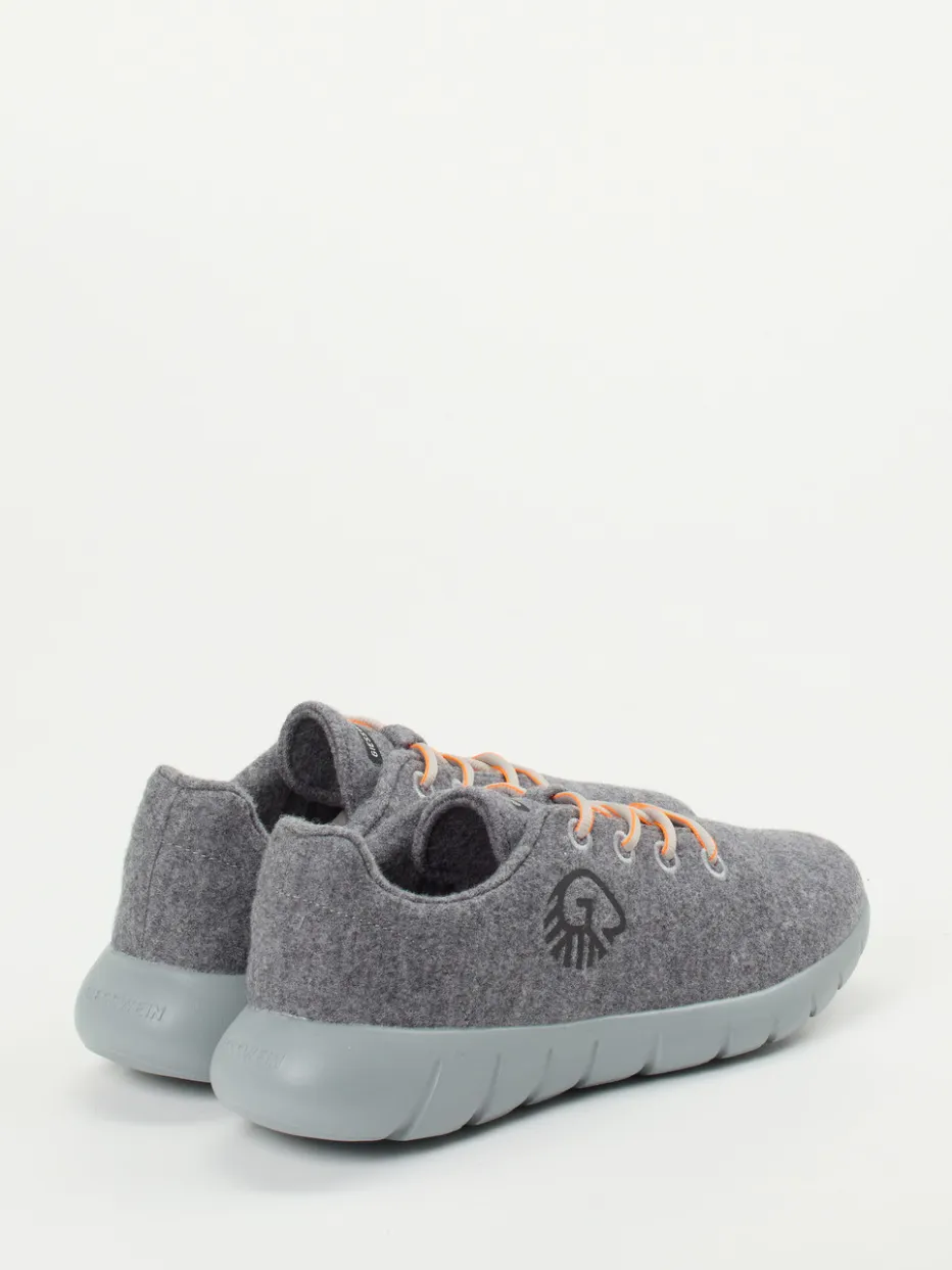 Merinowolle mit sportlicher Seele.Der Unisex-Sneaker von Giesswein vereint Hausschuhkomfort mit urbaner Lässigkeit. Für entspannte Stunden daheim oder entspannte Freizeitwege bietet das Modell maximalen Tragekomfort durch filziges Merinowoll-Obermaterial und eine ultraleichte Gummisohle mit Flex-Rillen. In Mittelgrau gehalten, zeigt sich das Design dezent und dennoch raffiniert – dazu setzen hellorange Schnürsenkel einen sportiven Akzent. Die runde, kompakte Form unterstreicht den minimalistischen Look, während das tonale Logo subtil Markenidentität vermittelt. Inspiriert vom Athleisure-Trend und gefertigt aus nachhaltigen Materialien, überzeugt der Sneaker funktional wie stilistisch. Stilvoll mit Merinosocken oder minimalistischen Essentials kombinierbar. Natürlich leicht, komfortbewusst und markentypisch durchdacht.