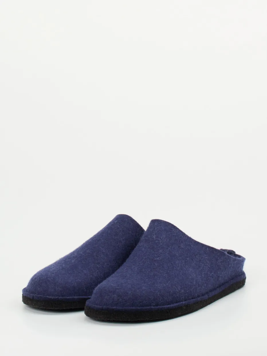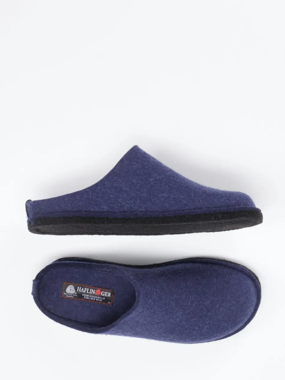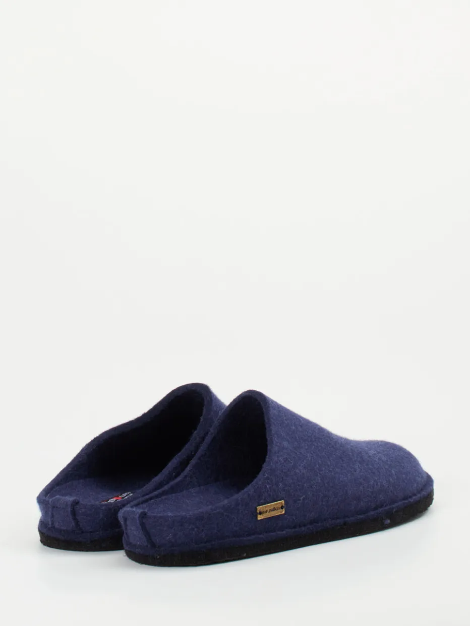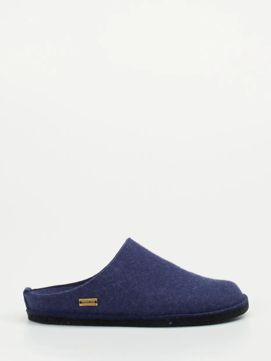 Wärmender Komfort trifft auf klares Design.Haflinger präsentiert diese marineblauen Filzpantoffeln aus gewalkter reiner Schurwolle. Ideal an kühlen Tagen daheim: Die geschlossene Vorderkappe bietet ein sicheres Tragegefühl, während die offene Ferse schnelles An- und Ausziehen erlaubt. Das Material überzeugt durch seine natürliche Wärmeisolierung und atmungsaktive Eigenschaften. Die minimalistische Gestaltung in matter Optik wird durch ein dezentes Metalllabel seitlich abgerundet. Eine gummierte, filzbezogene Sohle sorgt für Halt auf glatten Böden. Im Spannungsfeld zwischen Slow Living Trend und unaufdringlicher Funktionalität ist dieses Modell wie gemacht für entspannte Stunden mit Stilbewusstsein. Haflinger steht für natürlichen Hausschuhkomfort mit traditionsreicher Verarbeitung.