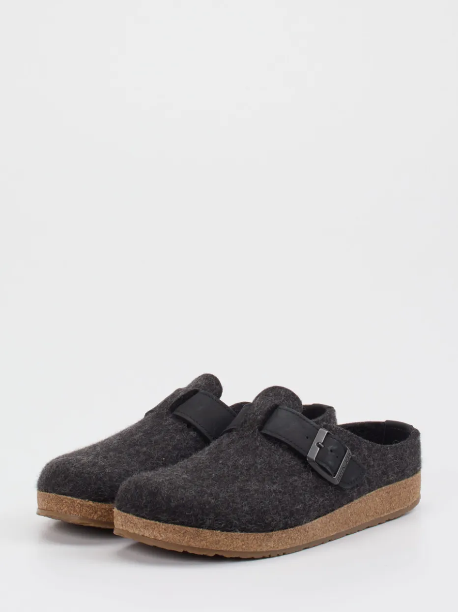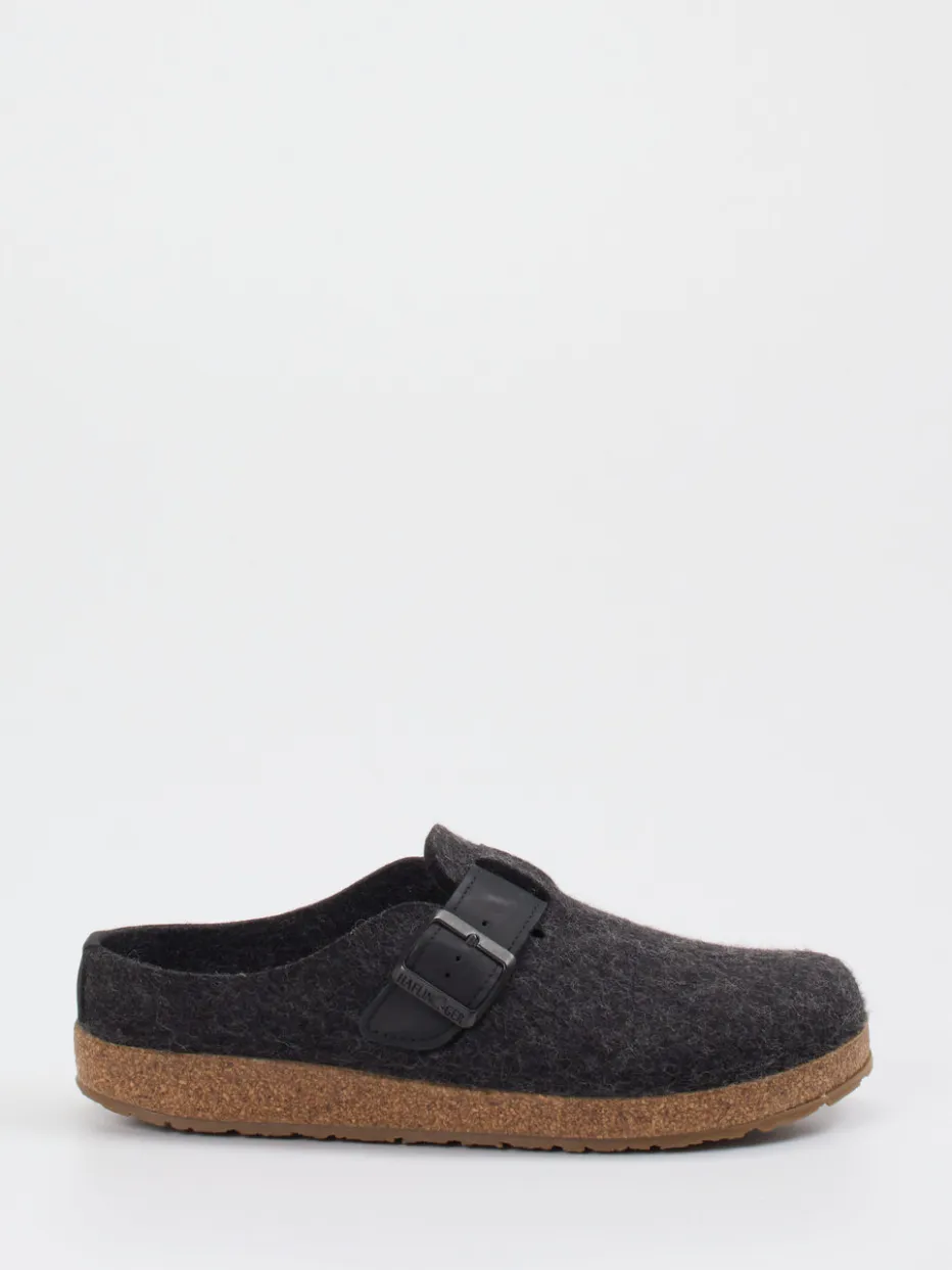 Für entspannte Stunden in den eigenen vier Wänden sorgt das Obermaterial aus reiner Wolle für natürliche Wärme und ein angenehmes Fußklima. Die filzige Struktur des Wollfilzes in edlem Anthrazit unterstreicht den minimalistischen Look. Eine mattschwarze Schnalle auf dem verstellbaren Riemen fügt sich subtil ins Bild. Die ergonomisch geformte Gummisohle mit integrierter Korkschicht stützt sanft, während der offene Fersenbereich für schnelles Hineinschlüpfen sorgt. Ideal für entspannte Loungewear-Outfits und harmonisch im Trend zu „Quiet Luxury“ und „Natural Comfort FW24“.