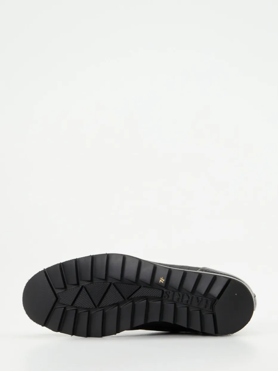 Luxus-Statement für kühle Tage.Die Herren-Schnürboots von Harris vereinen Stil mit Funktion. Ideal für herbstliche Stadtspaziergänge bieten diese knöchelhohen Boots mit Lammfellfutter zuverlässige Wärme bei eleganter Optik. Geprägtes Leder mit Krokotextur, schwarze Lackleder-Overlays und goldfarbene Reißverschlüsse betonen den einzigartigen Materialmix. Die Schwarzfärbung korrespondiert mit dunklem Rot im Einstieg und dekorativem Emblem. Stabile Gummisohlen mit Zackenprofil bieten Grip, der Schnitt zeigt urbanen Streetwear-Einfluss mit Quiet Luxury-Anmutung. Modisch mit Steppjacke oder dunkler Denim kombinierbar. Handwerkskunst von Harris trifft funktionale Ästhetik auf hohem Niveau.