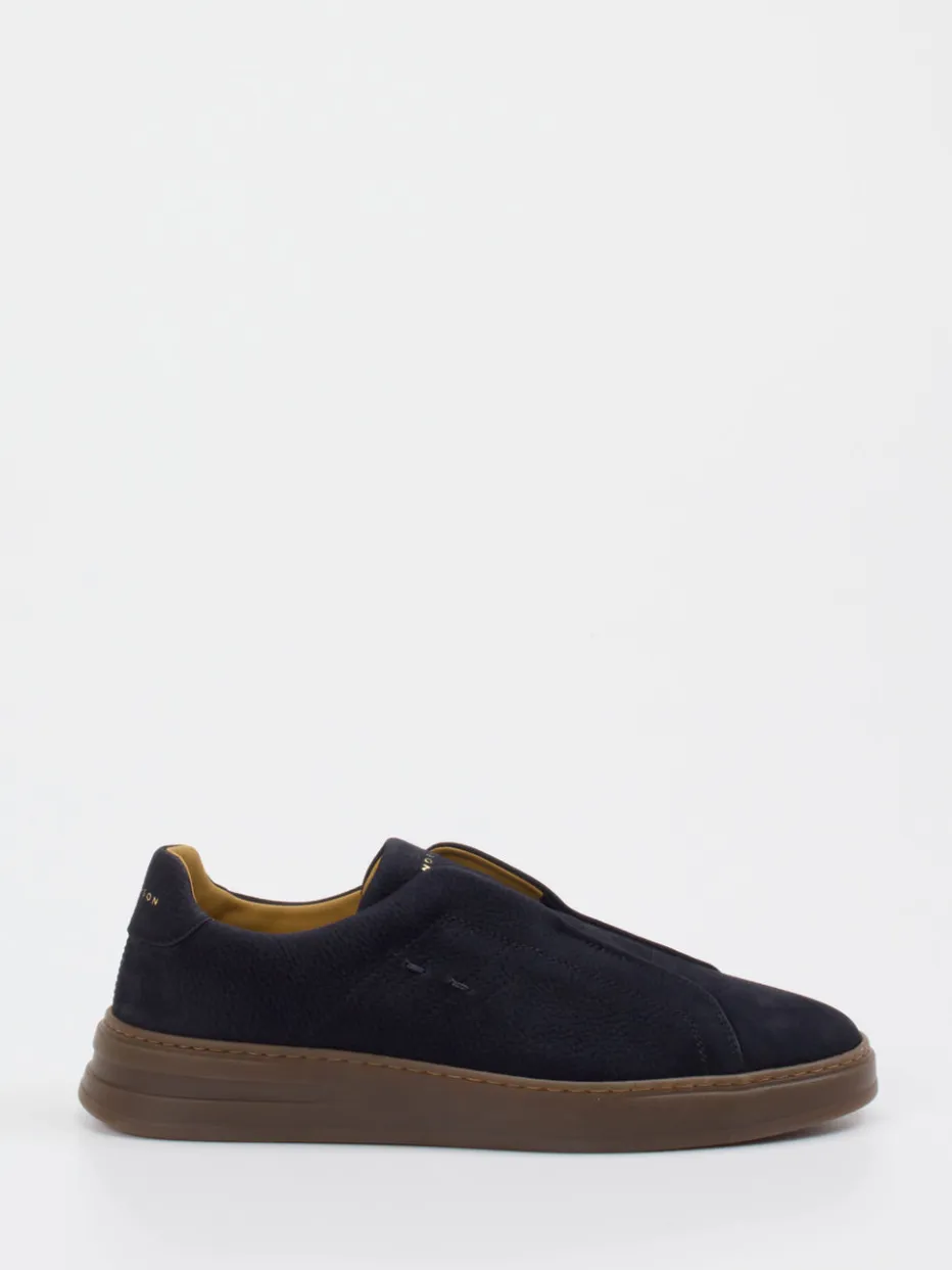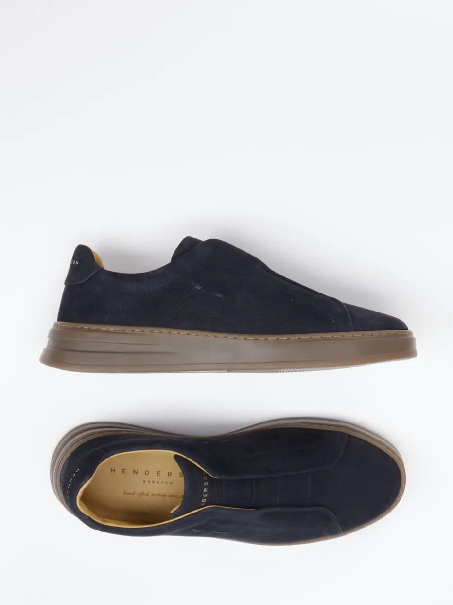 Komfort trifft Stil – in elegantem Dunkelblau.Henderson interpretiert klassische Slip-On Sneaker für Herren mit feinem Gespür für Qualität und Understatement. Ideal für dynamische Tagesabläufe im Büro oder in der Freizeit bietet dieser Schuh mit gepolstertem Einstieg und elastischen Einsätzen mühelosen Komfort. Das dunkelblaue Nubukleder ist samtig angeschliffen und zeigt eine dezente Narbung, ergänzt durch eine farbabgestimmte Gummisohle und eine goldgeprägte Logo-Applikation am Schaft. Die abgerundete Silhouette und klare Formensprache greifen den Trend „Quiet Luxury“ auf. Besonders harmonisch in Kombination mit Chinos und Lederaccessoires in Cognac. Ein stilvolles Statement für Puristen mit Sinn für urbane Eleganz.
