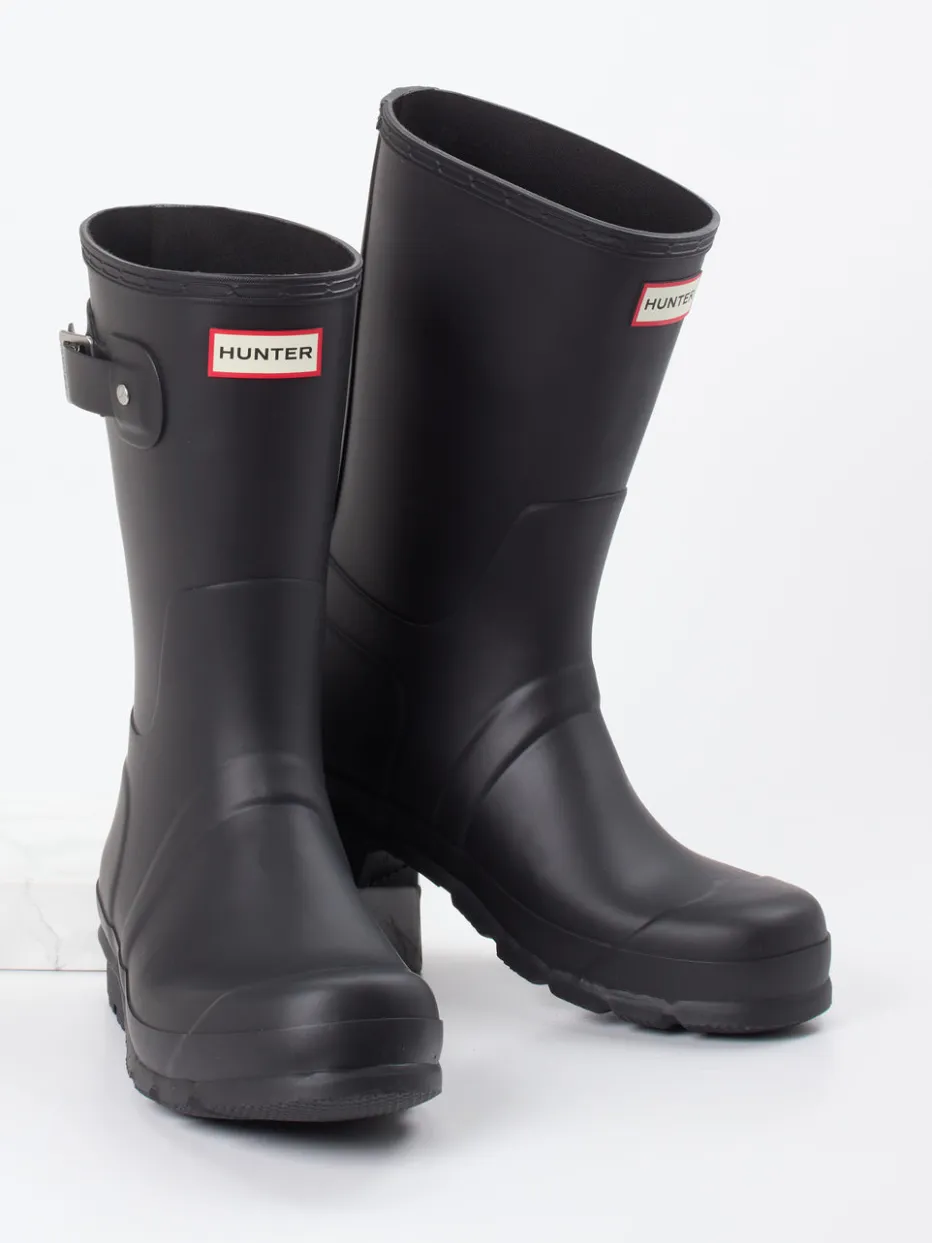 Dieser klassische Gummistiefel von Hunter kombiniert wetterfestes Synthetikmaterial mit verstellbarem Schaft und rutschhemmender Profilsohle für optimalen Outdoor-Komfort.