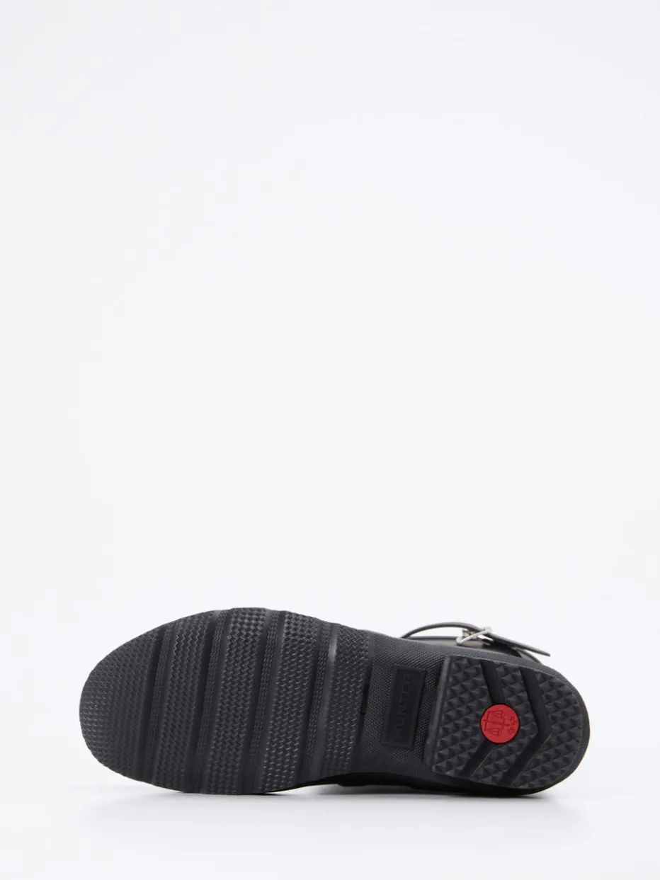 Für nasse Tage mit Stil.Hunter präsentiert funktionale Gummistiefel für Herren in schlichtem Schwarz. Ideal für den Alltag bei wechselhaftem Wetter: Das strapazierfähige, matte Synthetikmaterial schmiegt sich in gerade geschnittener Silhouette um das Bein, während die silberfarbene Schnalle am Schaft für individuelle Passform sorgt. Die strukturierte Laufsohle mit starkem Profil gibt Halt auf rutschigem Untergrund. Der eingeprägte Marken-Patch und dezente Designelemente unterstreichen den Utility-inspirierten Look im Sinne der Quiet Utility AW24. Perfekt zu Regenjacke und Thermosocken kombinierbar. Robuste Funktion trifft auf britischen Purismus – typisch Hunter.