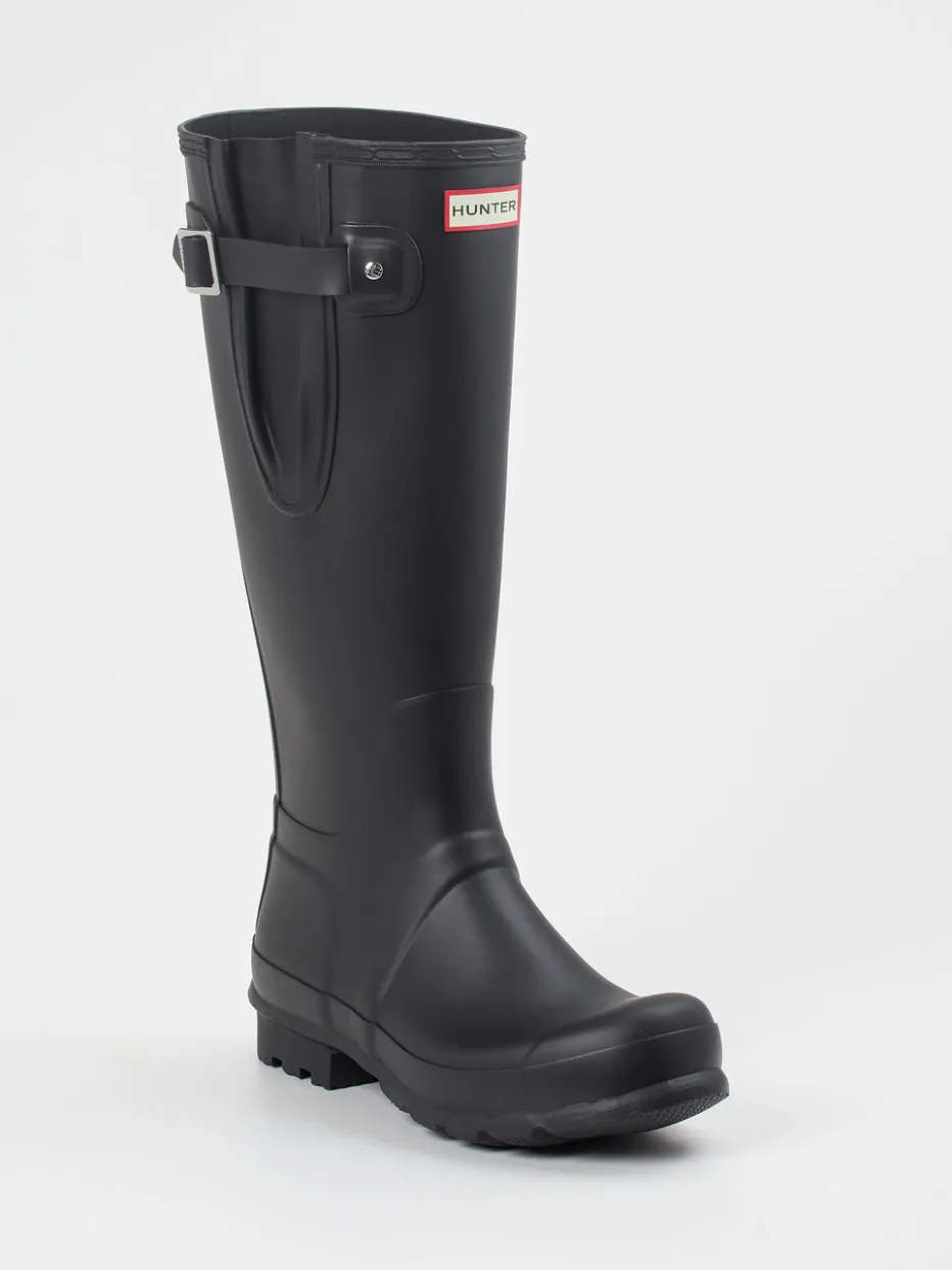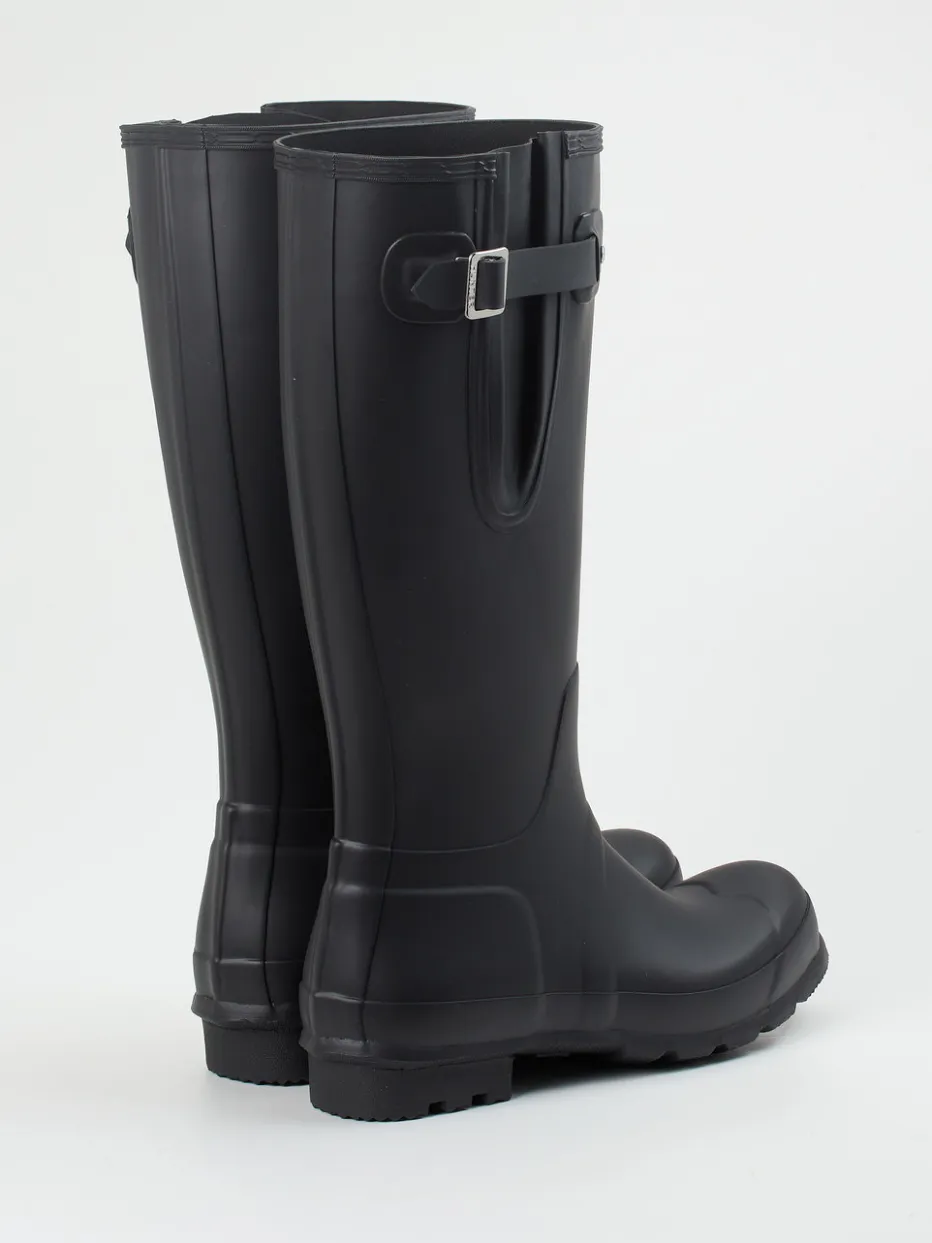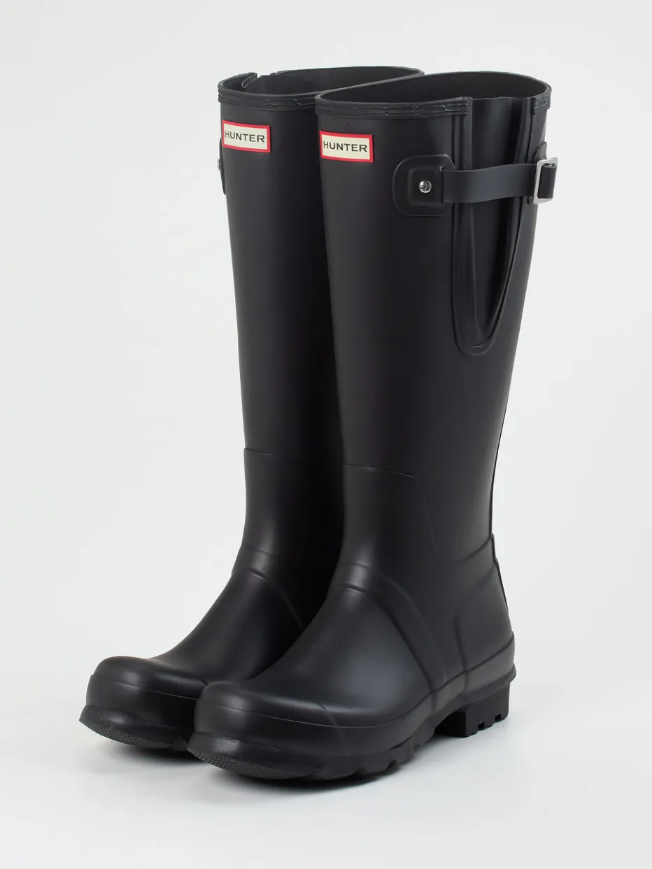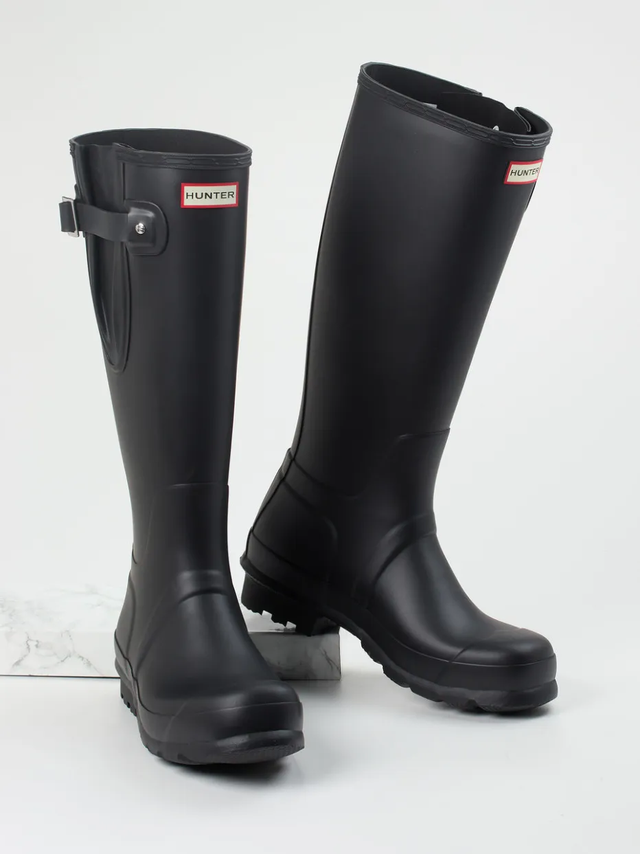 Der schwarze Gummistiefel von Hunter überzeugt mit seiner matten Oberfläche, verstellbarem Schaft und funktionaler Profilsohle – ein stilvoller Begleiter bei jedem Wetter.