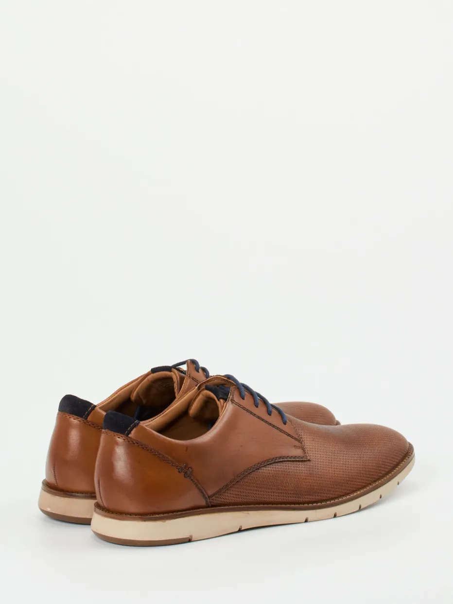 Der strukturierte Derbyschuh in Cognacbraun vereint elegantes Design und höchsten Komfort. Ideal für entspannte Business-Styles mit modernem Twist.