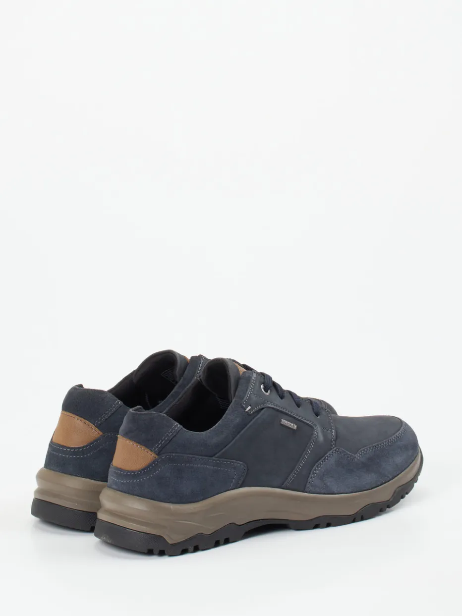 Wetterfest durch die Übergangszeit.Josef Seibel präsentiert klassisch geformte Herren-Outdoor-Schnürschuhe. Gefertigt aus dunkelblauem Nubukleder mit samtig-matter Oberfläche und kontrastierenden Steppdetails in Braun vereint der Schuh funktionalen Anspruch mit urbaner Optik. Die rund gearbeitete Silhouette mit gepolstertem Einstieg sorgt für angenehmen Tragekomfort, während die zementgraue Gummisohle mit markantem Profil zuverlässigen Grip gewährleistet. Eine wasserdichte TopDryTEX-Membran schützt zuverlässig vor Nässe, das austauschbare Fußbett bietet zusätzliche Alltagstauglichkeit. Besonders gut kombinierbar mit Jeans und Outdoorjacken. Perfekt für aktive Tage mit dem Komfortanspruch der Marke Josef Seibel.