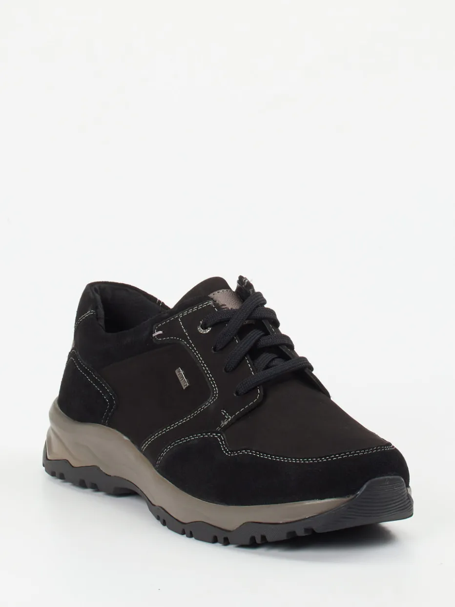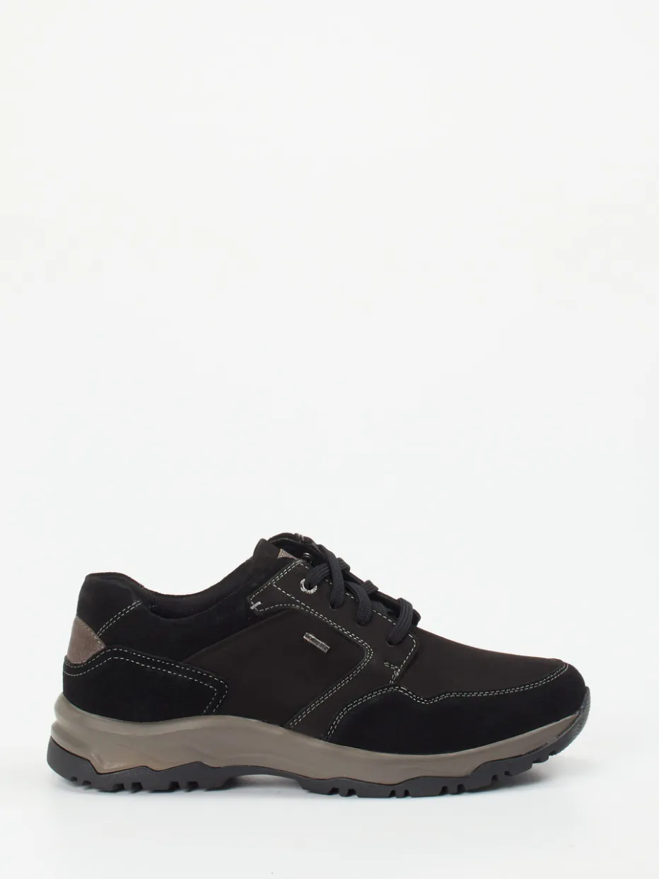 Dieser Herrenschnürschuh überzeugt mit wasserdichtem Nubukleder, funktionaler Laufsohle und gepolstertem Komfort – bestens geeignet für die Übergangszeit.