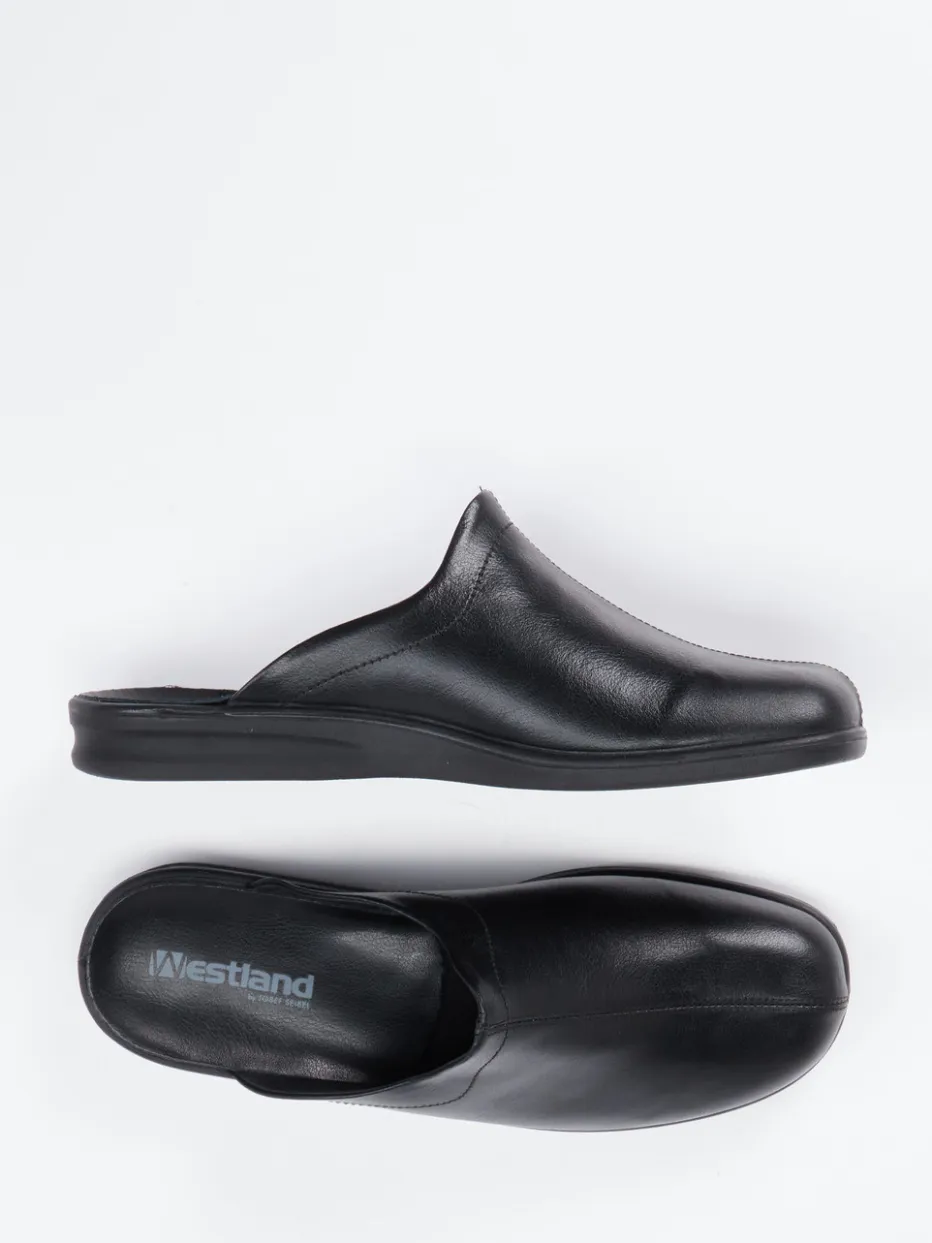 Stilsicher relaxen mit cleanem Komfort.Josef Seibel Relax präsentiert eine klassische Herren-Pantolette aus hochwertigem Kalbleder. Für ruhige Stunden zuhause bietet dieses Modell mit geschlossener Vorderkappe und offener Ferse hohen Komfort dank ergonomischer Form und weich gepolsterter Innensohle. Das schwarze Glattleder zeigt sich in matter Optik mit Ton-in-Ton-Nähten und betont den minimalistischen Look im Stil des „Quiet Luxury“-Trends. Die Gummisohle mit leichter Profilierung sorgt für Trittsicherheit im Haus. Lässt sich hervorragend zu Loungewear oder Casualwear kombinieren. Ein durchdacht relaxter Schuh mit der typischen Leichtigkeit von Josef Seibel.