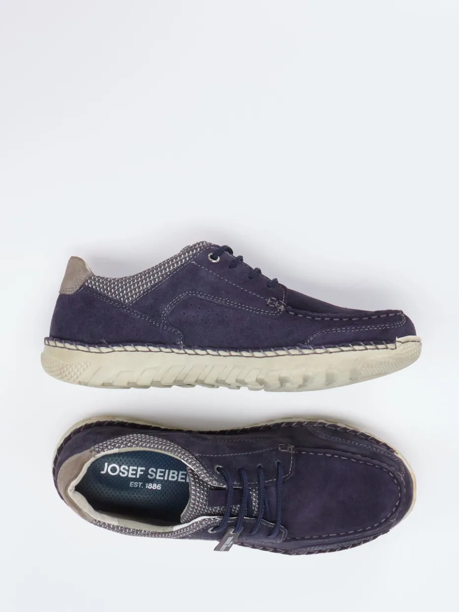 Der elegante Herren-Schnürschuh von Josef Seibel vereint weich gepolsterten Tragekomfort mit einem klaren Design in Dunkelblau – ideal für entspannte Alltagssituationen.