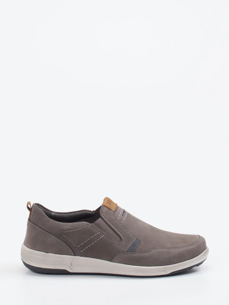 Schlichte Form, maximaler Komfort. Die Marke Josef Seibel präsentiert einen komfortorientierten Slipper für Herren. Dank elastischer Einsätze eignet sich dieses Modell ideal für den schnellen Einstieg im Alltag. Gefertigt aus grauem Nubukleder mit samtig-matter Oberfläche, ergänzt durch Kontrastnähte und eine cognacbraune Logo-Applikation, strahlt der Slipper dezente Eleganz aus. Die flache, profilierte Gummisohle und das gepolsterte Wechselfußbett gewährleisten hohen Gehkomfort. Casual-Looks mit Jeans und Hemd profitieren von der kombifreundlichen Farbgestaltung. Inspiriert vom „Comfort First“-Trend auch für urbane Freizeitsettings geeignet. Markentypische Qualität trifft auf mühelose Alltagstauglichkeit.